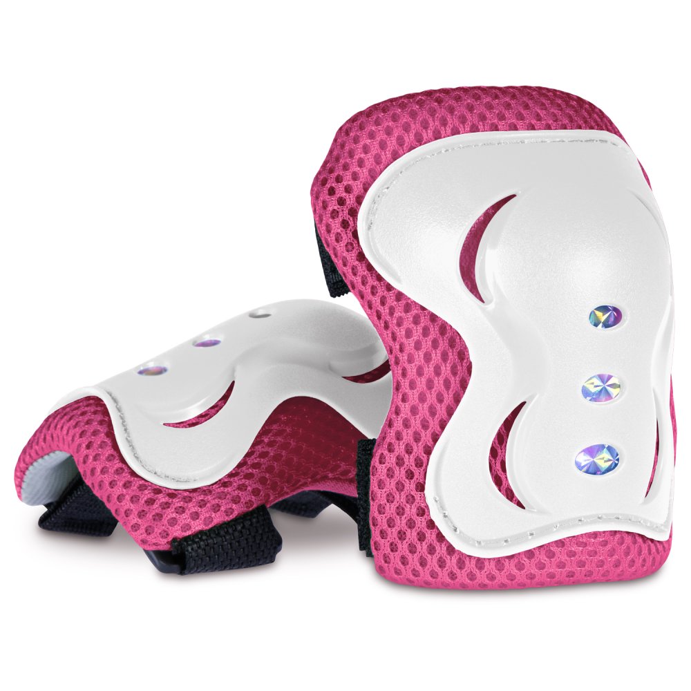 В комплекте с роликами поставляется набор защиты, который включает в себя наколенники, налокотники, перчатки и шлем. Это обеспечивает дополнительную безопасность вашему ребенку во время катания, защищая его от ушибов и травм. Все элементы защиты легко регулируются и обеспечивают надежную защиту во время активных игр на улице или в парке.
