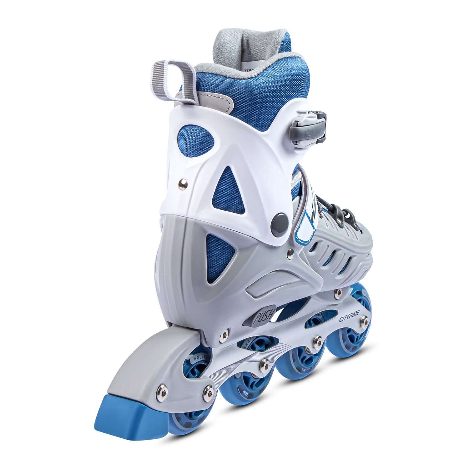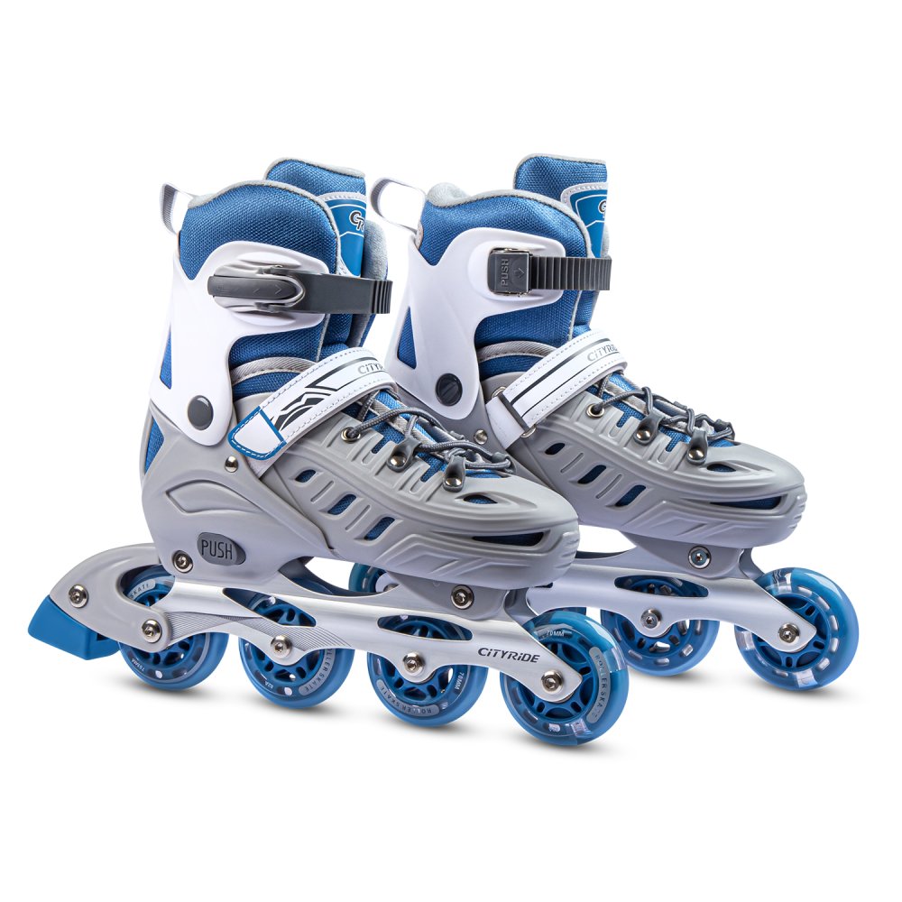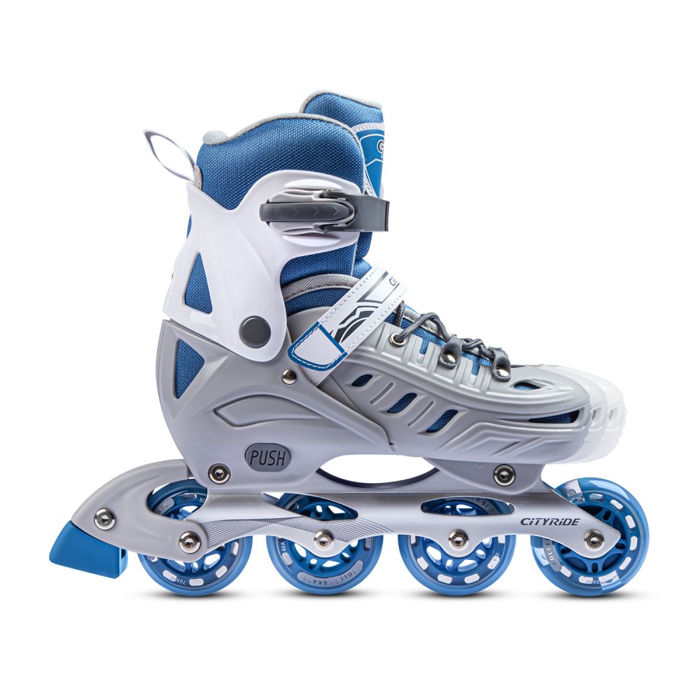 Ролики раздвижные CiTYRIDE, колеса PU, подшипники ABEC 7, алюминиевая рама, ботинок пластик, цвет Серый-синий