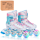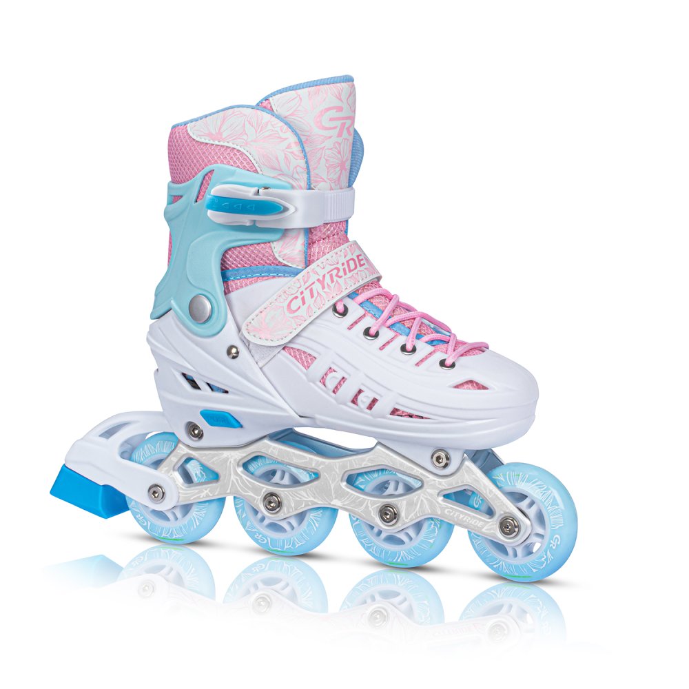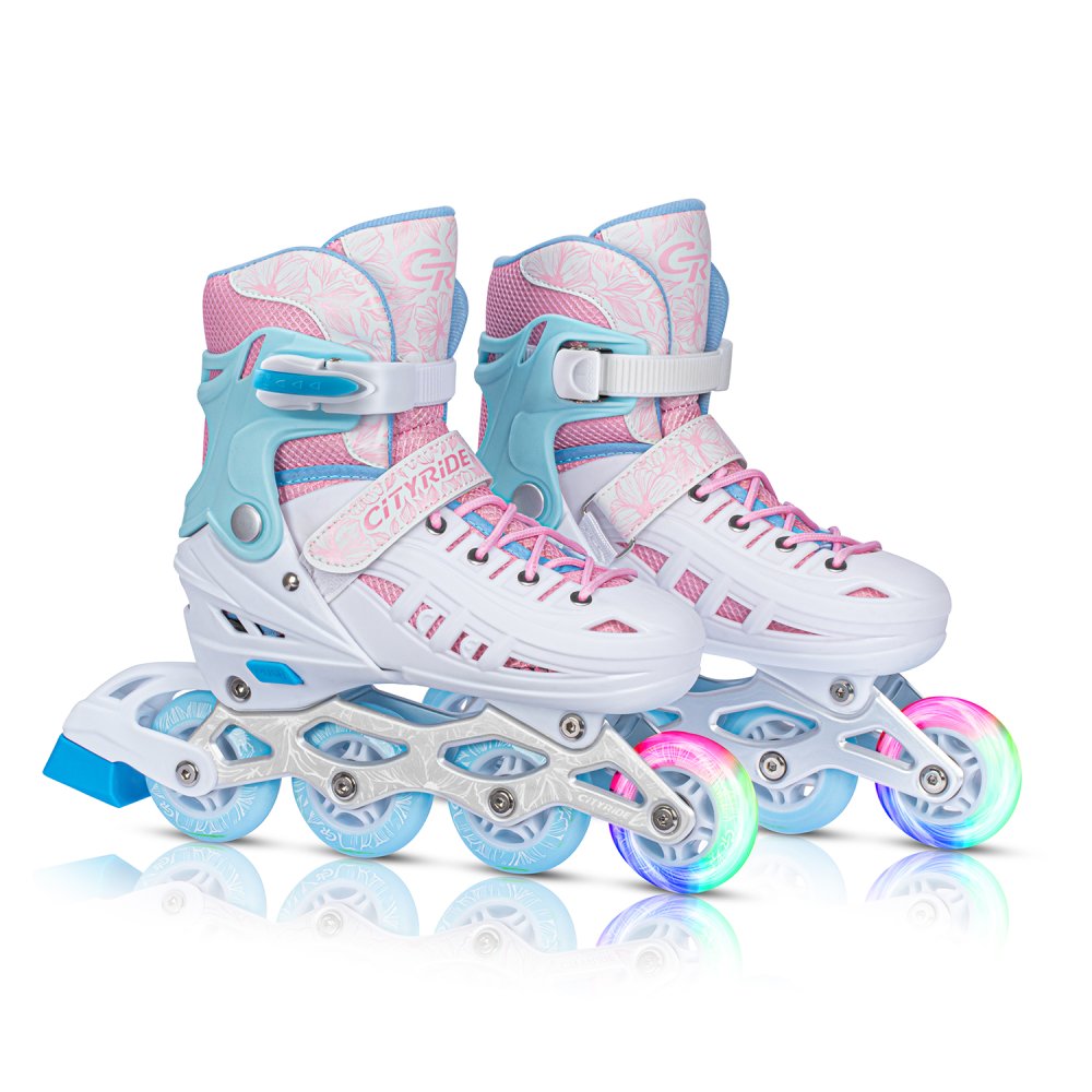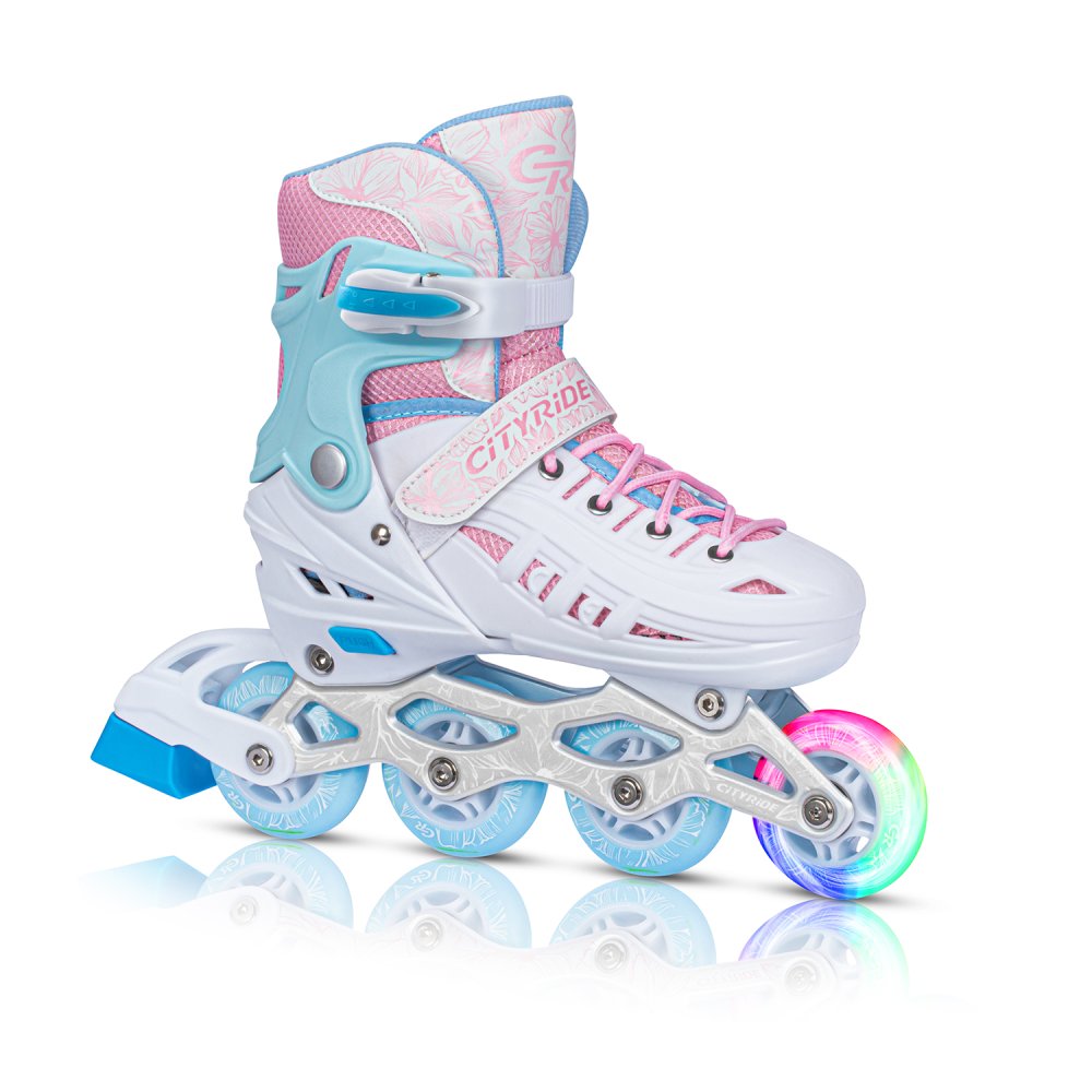 Роликовые коньки CITYRIDE, белый-розовый, PU колеса, переднее колесо со светом, подшипники ABEC 7, п