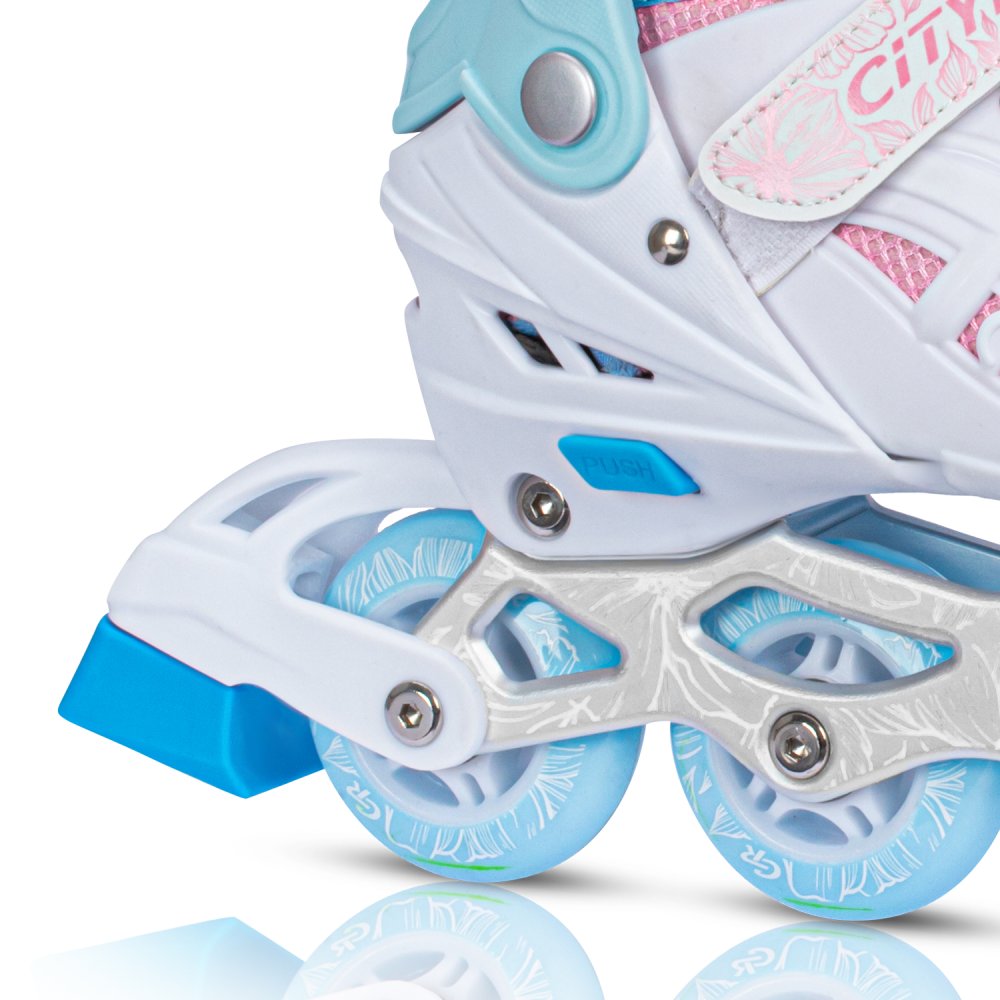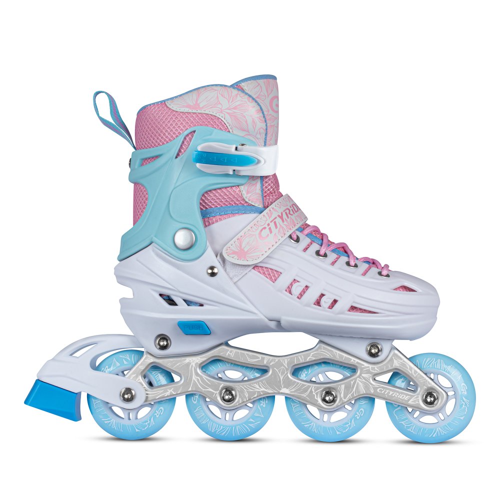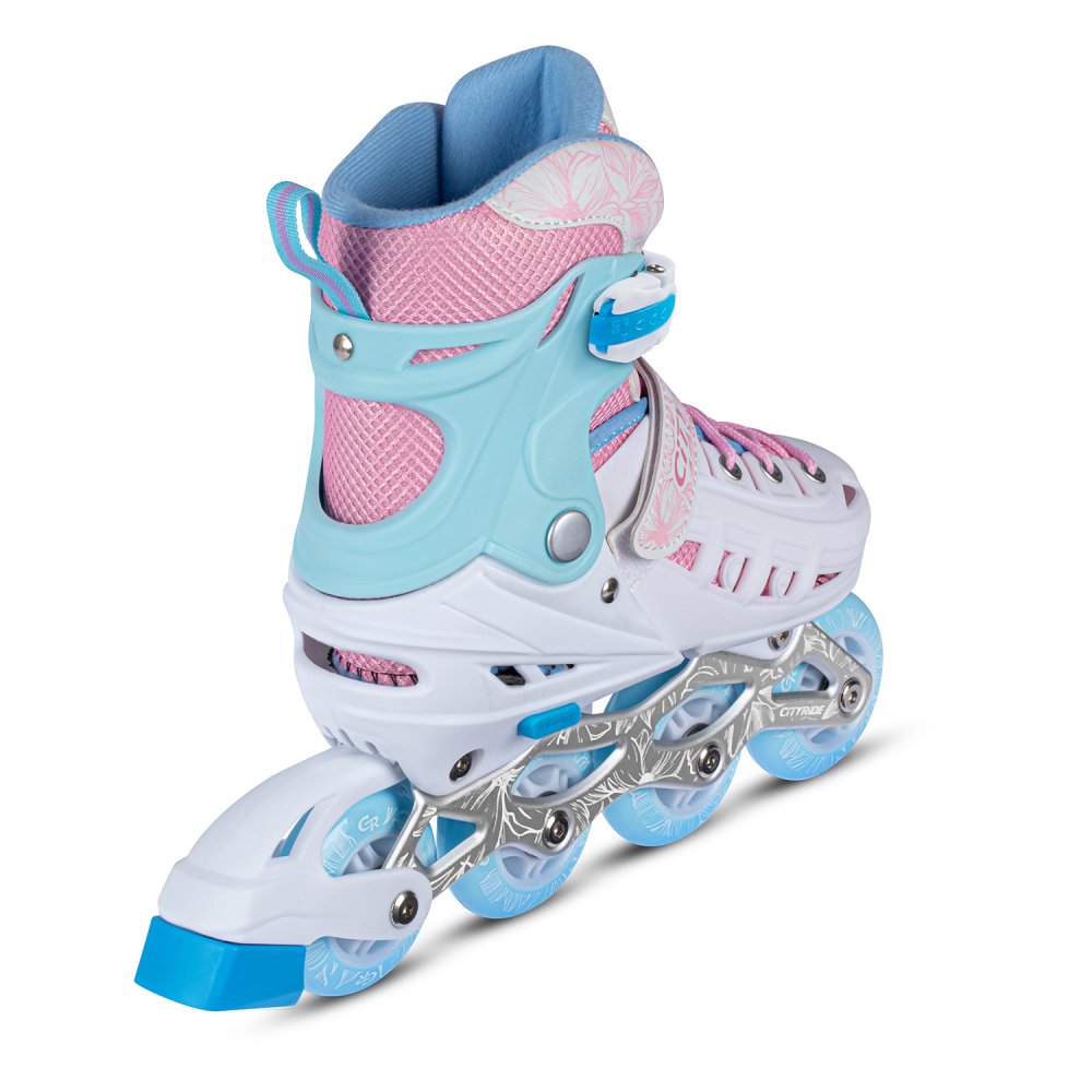 Роликовые коньки "CITY-RIDE" - яркий и безопасный спортивный инвентарь для активного отдыха. Полиуретановые колеса. Стильный дизайн и регулировка размера обеспечат удовольствие от каждой поездки. Первое колесо светится. Коньки раздвижные (до 5 размеров) Мягкий внутренний сапожок для комфортного катания и полностью пластиковый внешний ботинок для контроля и маневренности. Материал рамы: металл Тип подшипников: ABEC 7 Диаметр колеса: 64 мм для размера S, 70mm для размера М и L. Наличие тормоза: да Колеса: PU Жесткость колеса: 80А Тип фиксации: шнуровка, верхняя застежка (бакля), липучка Цвет: белый-розовый Максимальный вес пользователя: 60 кг Страна производства: Китай Страна бренда: Россия