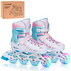 Роликовые коньки CITYRIDE, белый-розовый, PU колеса, переднее колесо со светом, подшипники ABEC 7, пластиковый мысок, в/к 5сл гофорокартон