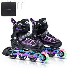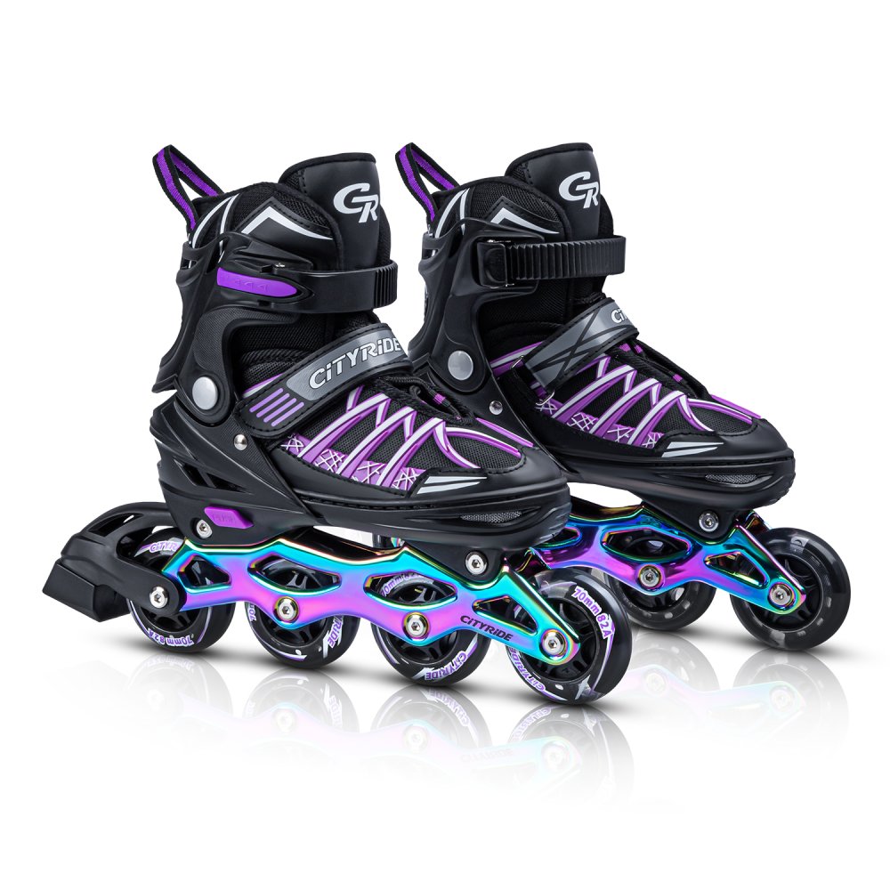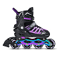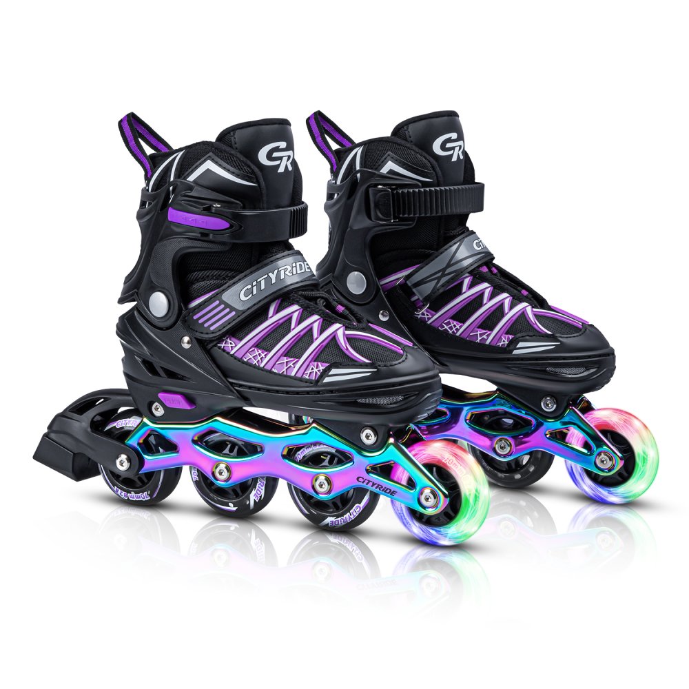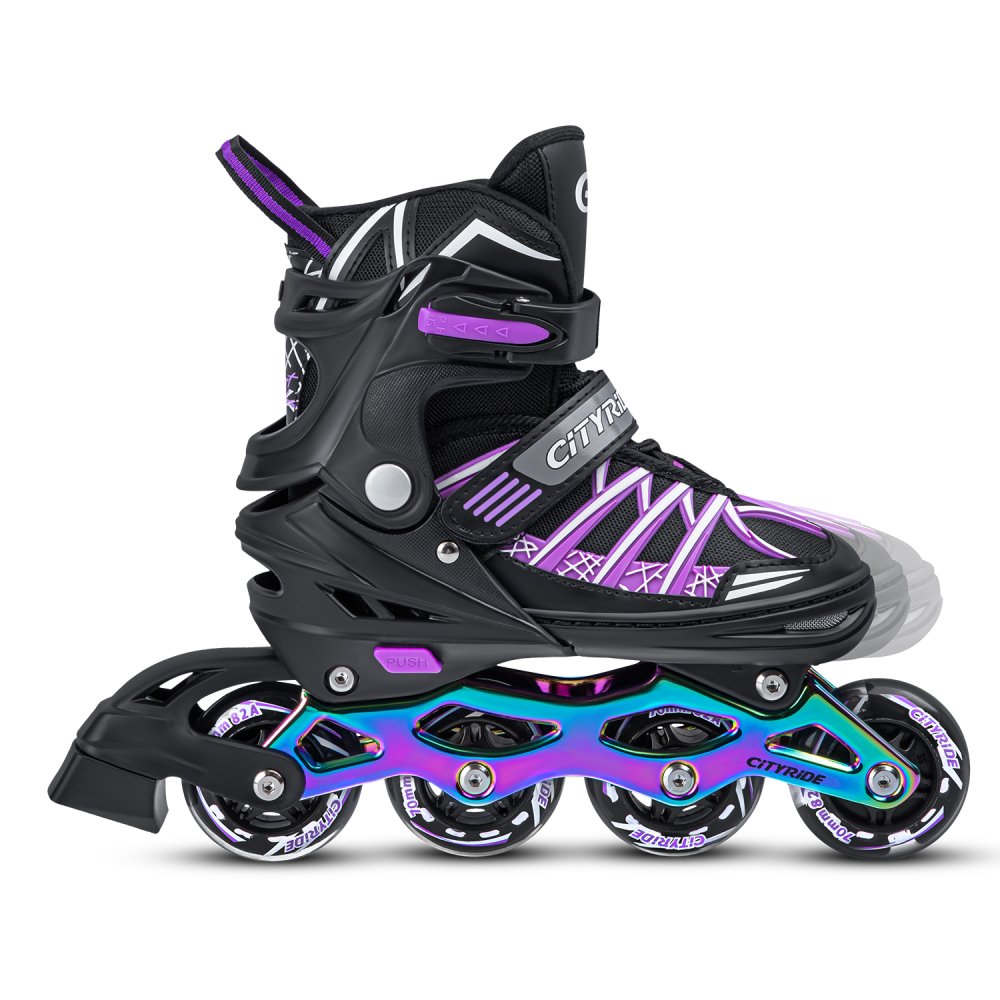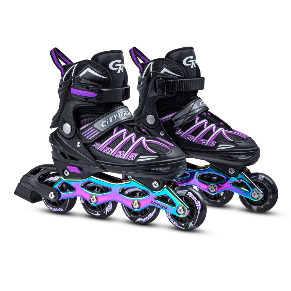 Роликовые коньки CITYRIDE, Черный-фиолетовый, PU колеса, переднее колесо со светом, подшипники ABEC