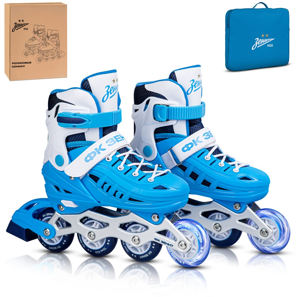 Роликовые коньки Зенит, голубой-белый, PU колеса, переднее колесо со светом, подшипники ABEC 7, плас