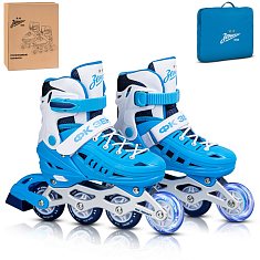 Роликовые коньки Зенит, голубой-белый, PU колеса, переднее колесо со светом, подшипники ABEC 7, пластиковый мысок, нейлоновая сумка, в/к 5сл гофрокартон