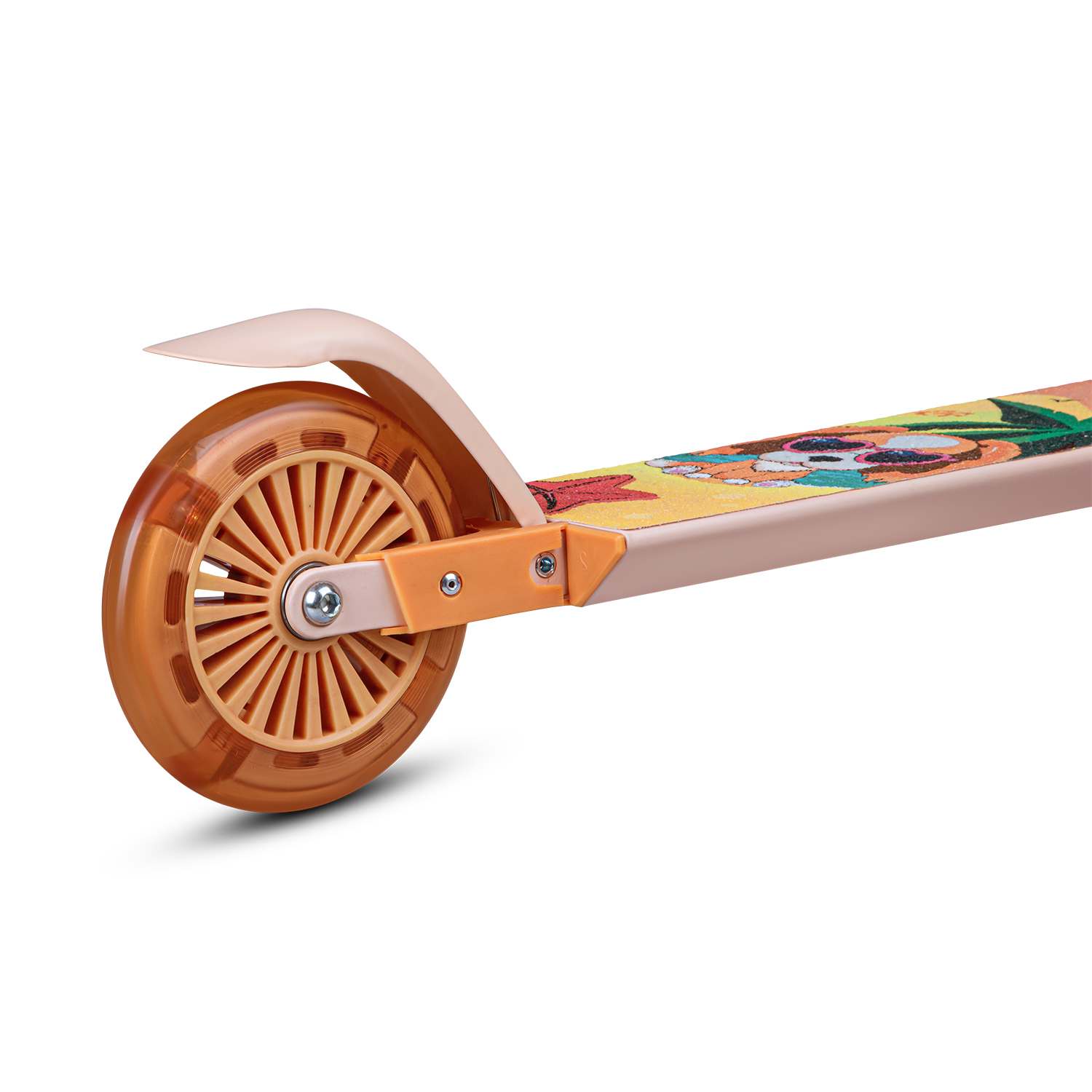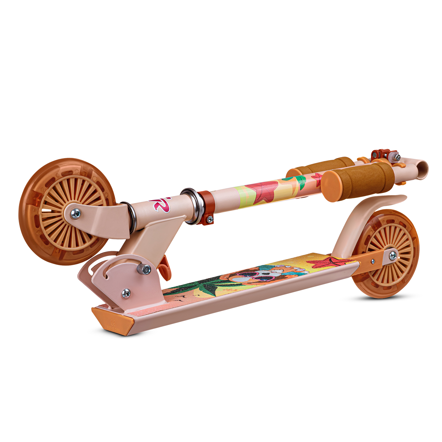 Двухкол. самокат CITYRIDE, ал. 50/50% , t-bar алюм, дека сталь, грипсы 95мм TPR, колеса PVC 120/120 мм, коралловый с принтом
