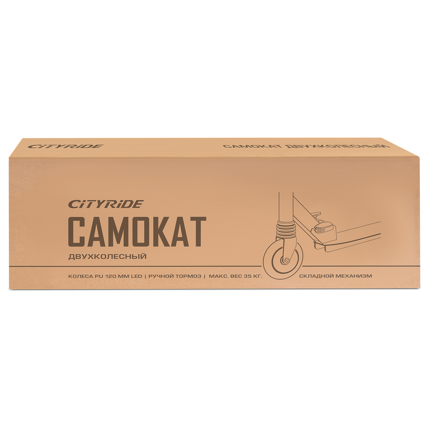 Двухколесный самокат CITY-RIDE 120, ал. 100%. Аморт. передний. Колеса PU 120/120 мм. Подшипники: Abe