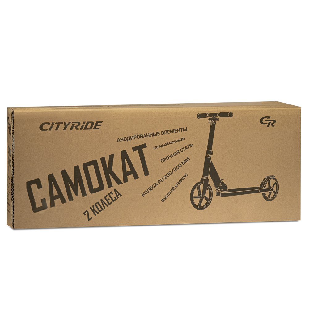 Двухколесный самокат CITYRIDE 200, ал. 50/50%, t-bar сталь, грипсы 135мм TPR, колеса PU 200/200, 86A
