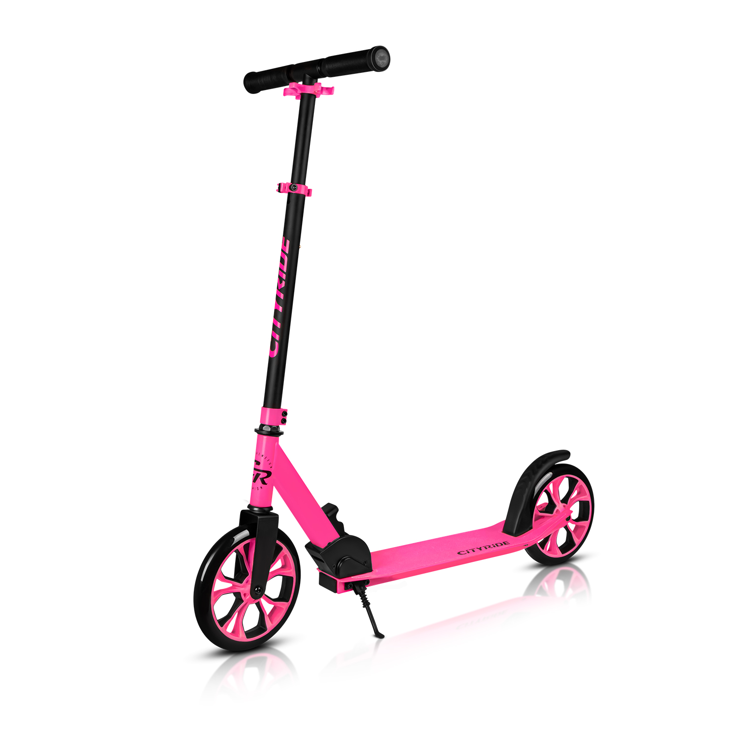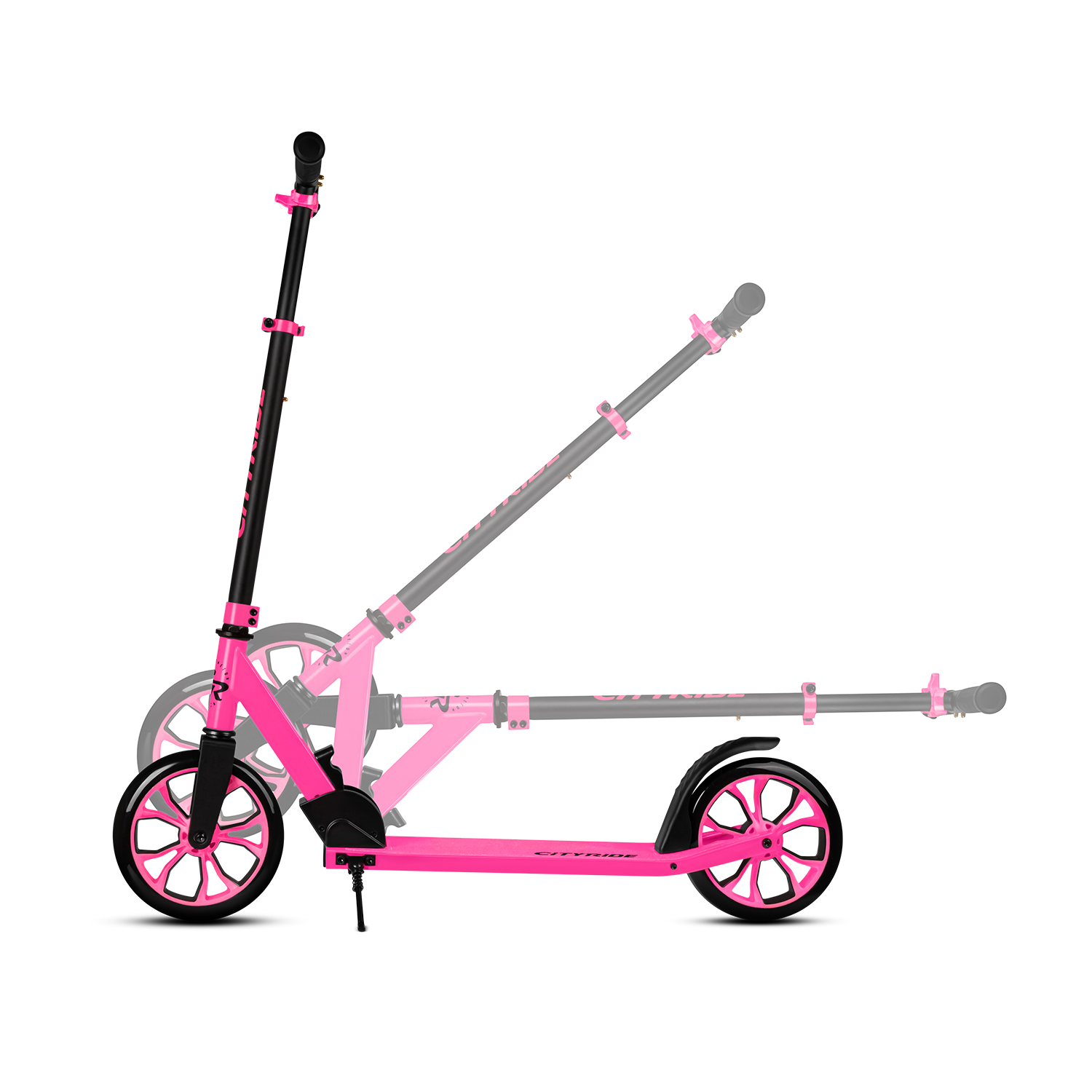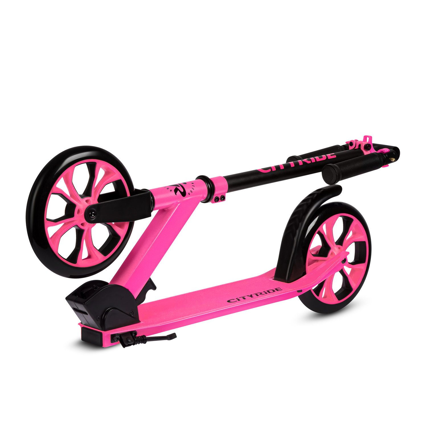 Двухколесный самокат CITYRIDE 200, ал. 50/50%, t-bar сталь, грипсы 135мм TPR, колеса PU 200/200, 86A, подножка, abec 9, розовый