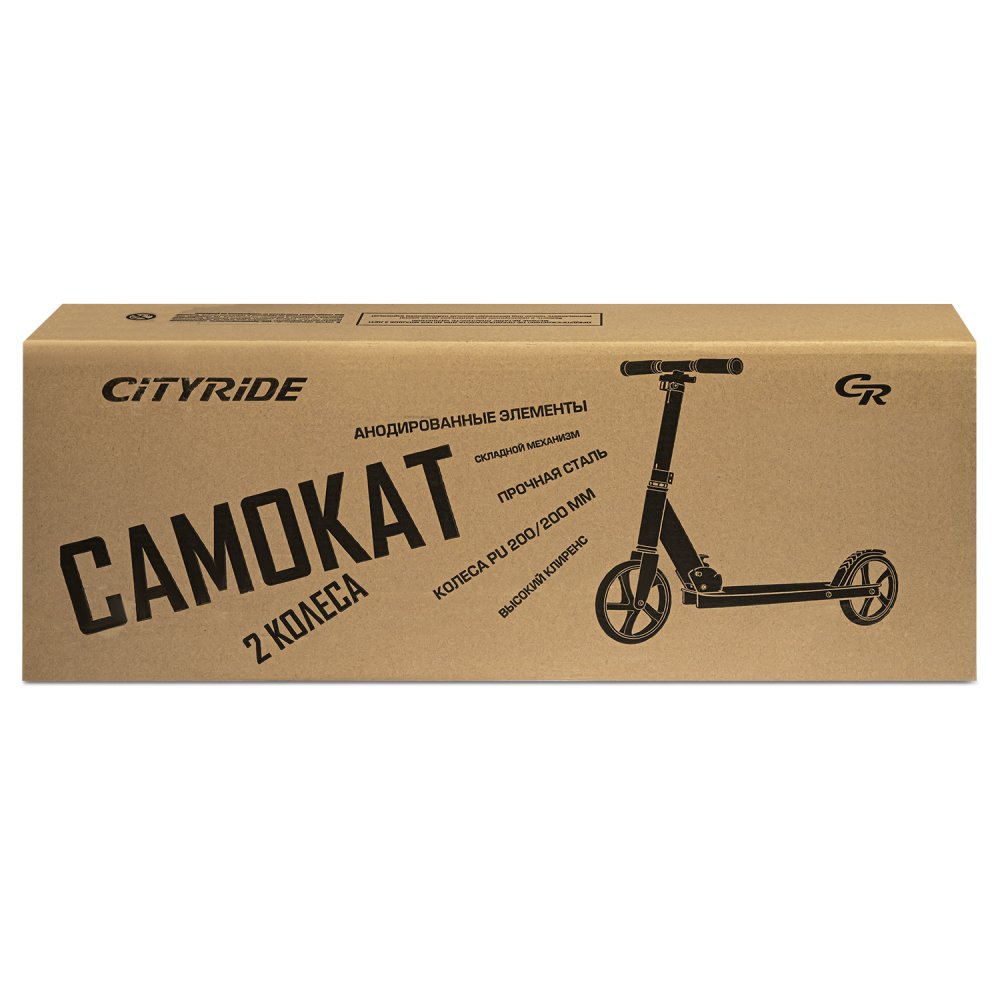 Двухколесный самокат CITYRIDE 200, ал. 50/50%, t-bar сталь, грипсы 135мм TPR, колеса PU 200/200, 86A