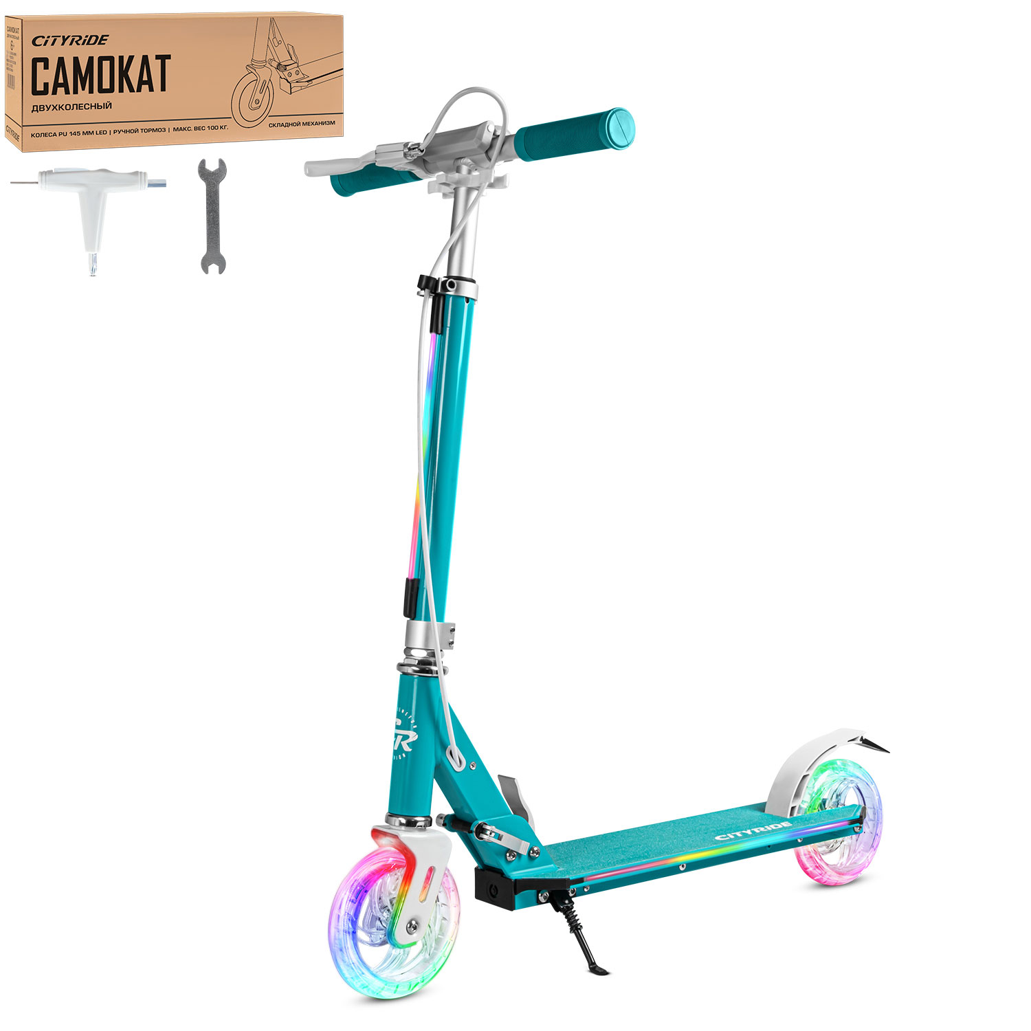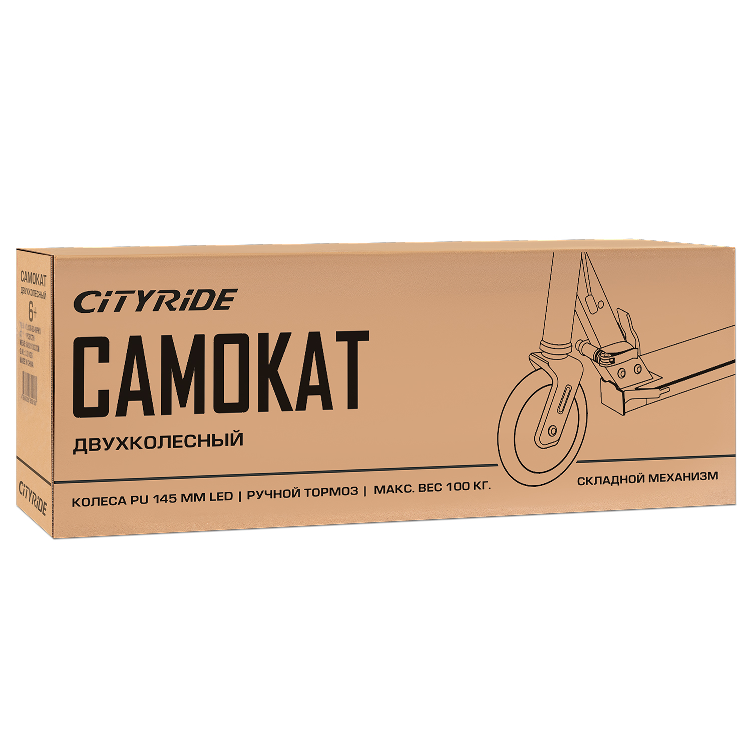 2хкол. самокат CITYRIDE 200, сталь 100%, грипсы 135мм TPR, колеса PU 200/200 мм. Черный