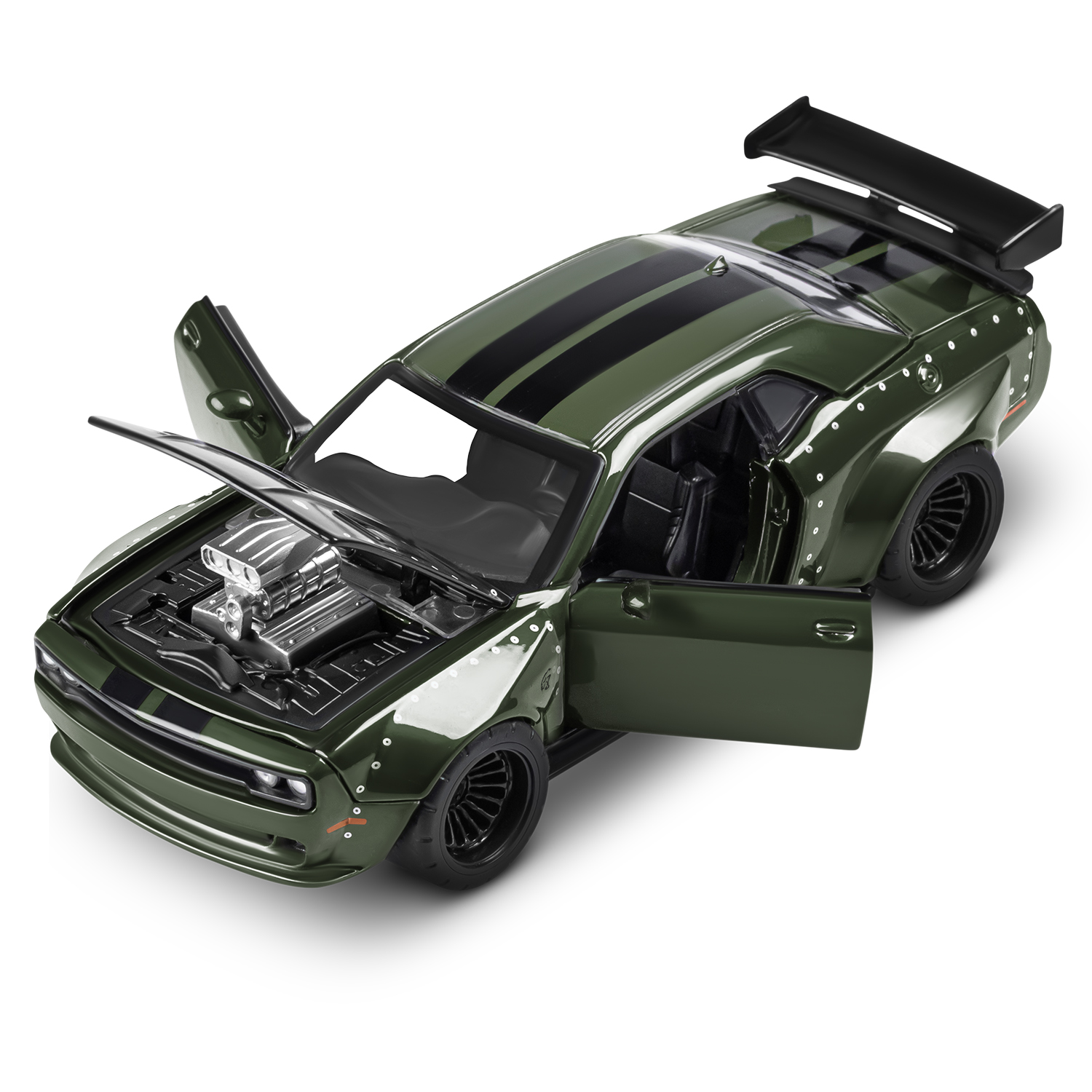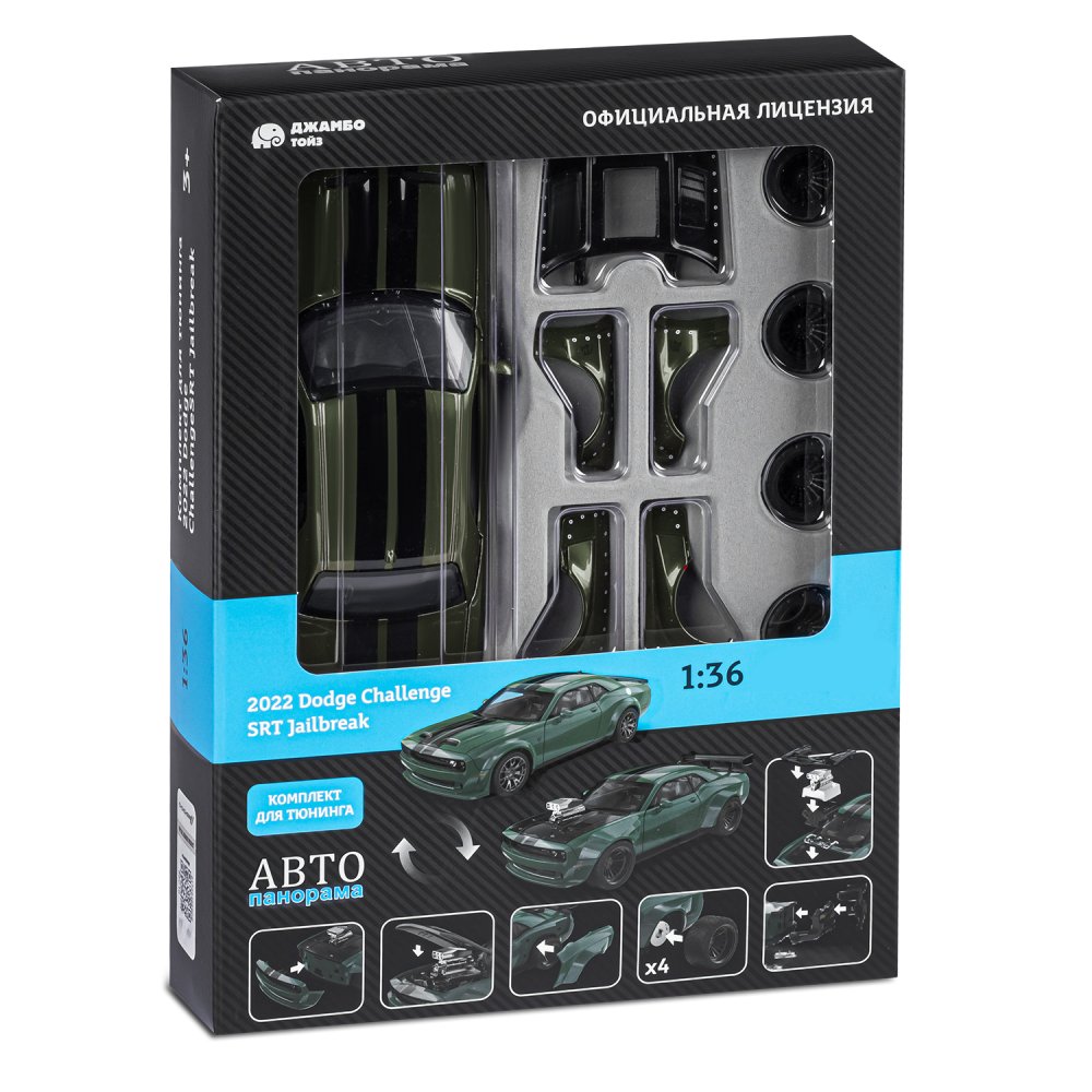 ТМ "Автопанорама" Машинка металлическая 1:36 2022 Dodge challenger SRT Jailbreak, зеленый, тюнинг, откр. двери, свободный ход колес, в/к 23,5*10*4 см