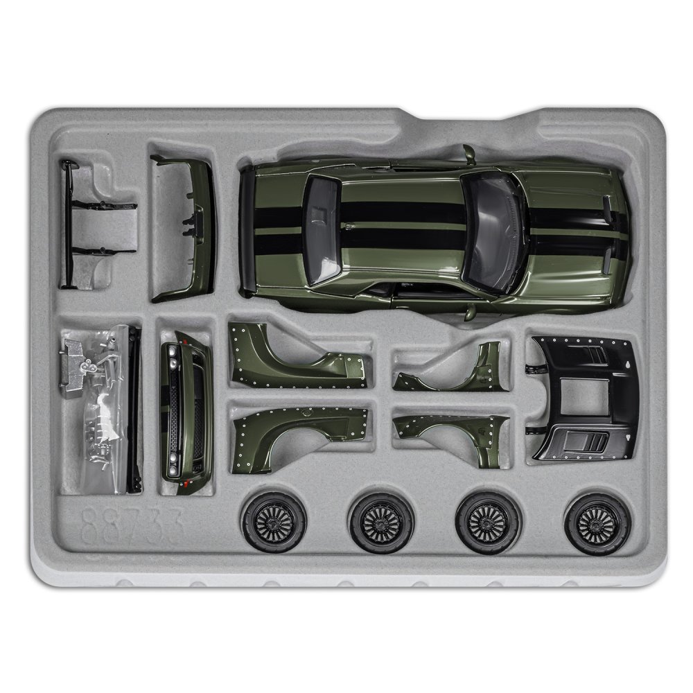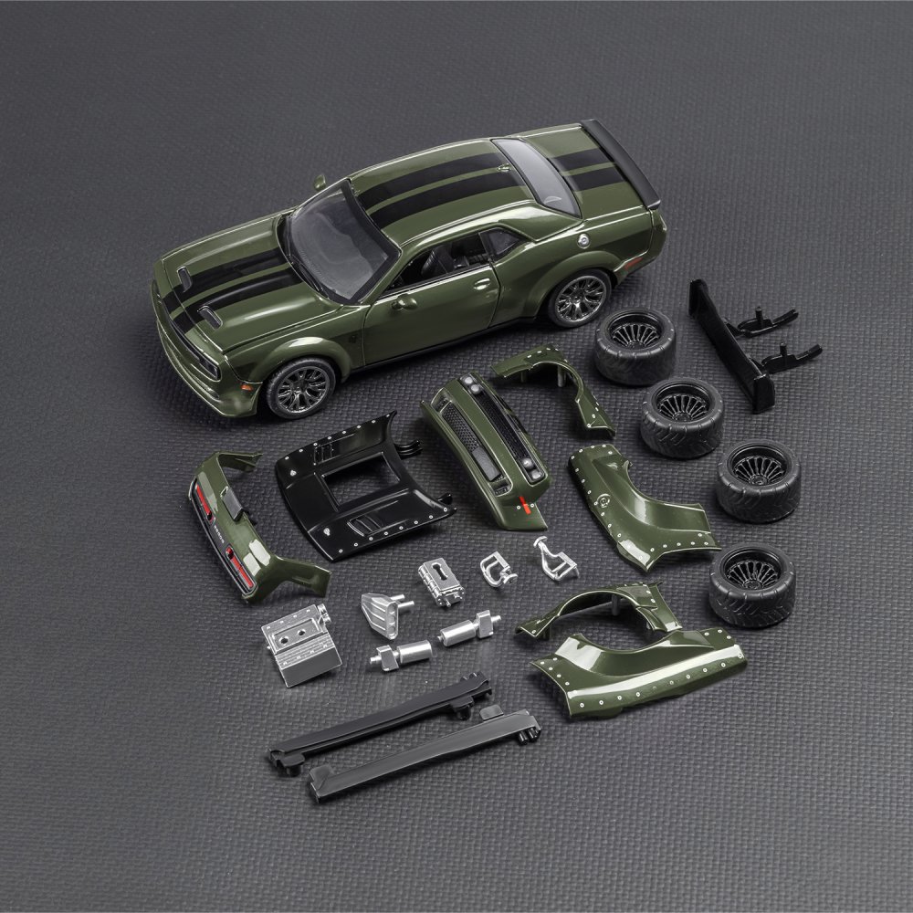 Лицензионная сборная металлическая модель 2022 Dodge Challenger SRT Jailbreak- реалистичная копия роскошного спортивного автомобиля в масштабе 1:36. Она отлично дополнит игрушечный гараж и станет прекрасным подарком для автолюбителя. Модель машинки детально проработана и выполнена в легко узнаваемом дизайне как у оригинала. Благодаря своей реалистичности, масштабная модель подойдет для коллекционирования. Особенностью модели является возможность тюнинга. В набор входит 21 предмет для внешнего обвеса, среди которых бампер, комплект колес, крышка капота, спойлер и другие. Кроме этого, можно собрать двигатель, что обязательно заинтересует маленьких механиков. У машинки открываются двери и капот. Колеса с резиновыми покрышками и дисками, детально проработанный салон, фары, прозрачные окна- всё как у настоящего автомобиля. Ребенок будет с удовольствием играть с такой машинкой дома и на улице, а благодаря компактным размерам, сможет брать ее в гости или в путешествие. Игрушка развивает мелкую моторику, реакцию и координацию движения, расширяет кругозор и знакомит с техникой. Металлические модельки - отличный подарок для мальчика на новый год, на 23 февраля или на день рождения!