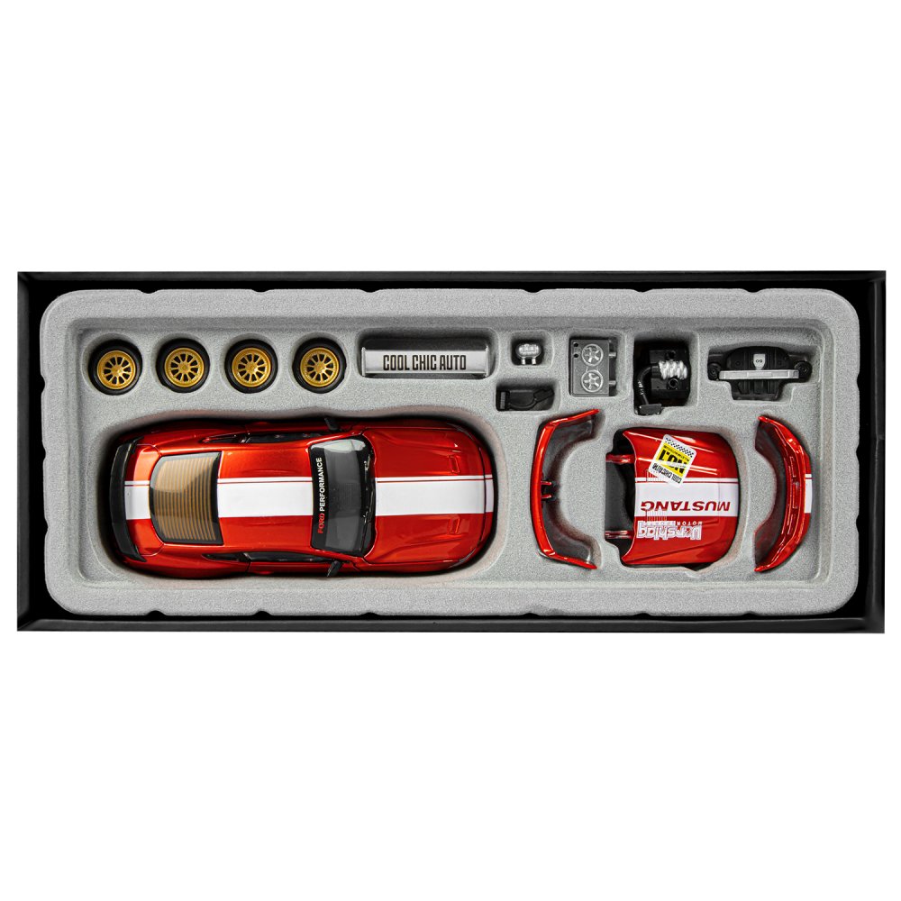 Лицензионная сборная металлическая модель Ford Mustang GT- реалистичная копия компактного спортивного автомобиля в масштабе 1:42. Она отлично дополнит игрушечный гараж и станет прекрасным подарком для автолюбителя. Модель машинки детально проработана и выполнена в легко узнаваемом дизайне как у оригинала. Благодаря своей реалистичности, масштабная модель подойдет для коллекционирования. Особенностью модели является возможность тюнинга. В набор входит 15 предметов для внешнего обвеса, среди которых бампер, комплект колес, крышка капота, спойлер и другие. Кроме этого, можно собрать двигатель, что обязательно заинтересует маленьких механиков. У машинки открываются двери и капот. Колеса с резиновыми покрышками и дисками, детально проработанный салон, фары, прозрачные окна- всё как у настоящего автомобиля. Ребенок будет с удовольствием играть с такой машинкой дома и на улице, а благодаря компактным размерам, сможет брать ее в гости или в путешествие. Игрушка развивает мелкую моторику, реакцию и координацию движения, расширяет кругозор и знакомит с техникой. Металлические модельки - отличный подарок для мальчика на новый год, на 23 февраля или на день рождения!