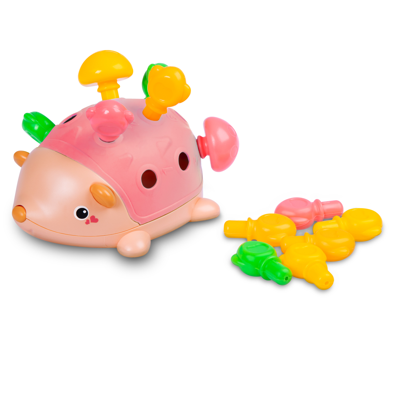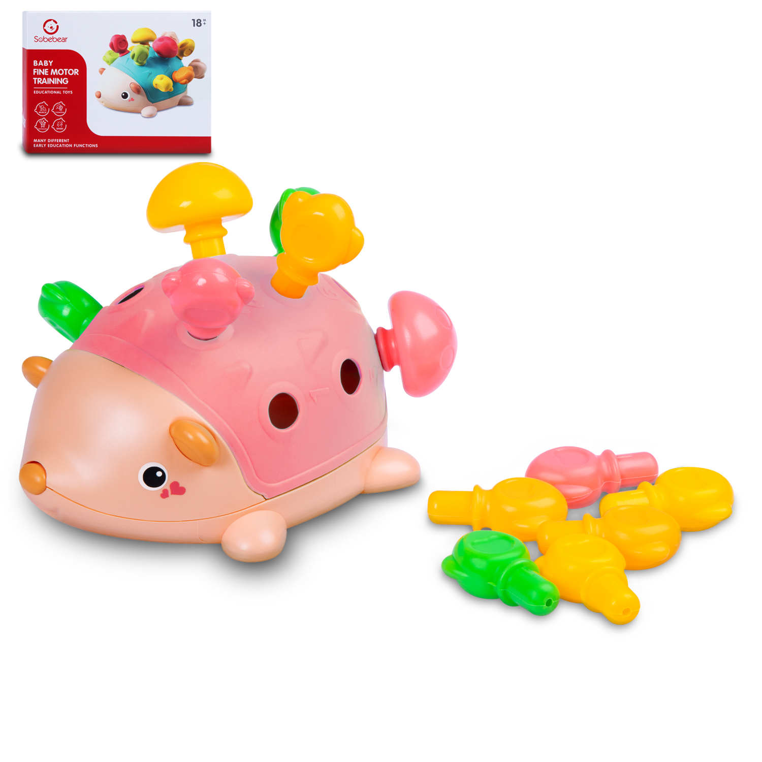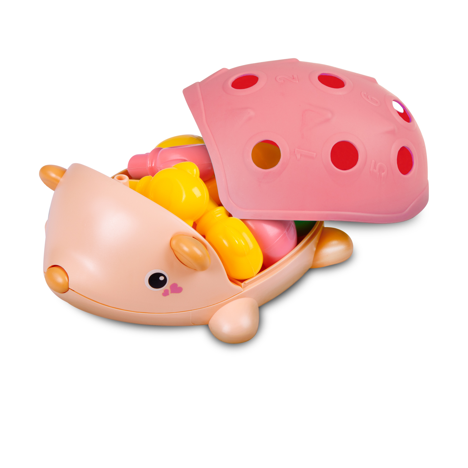 Каждое отверстие на спинке ёжика соответствует определенному цвету и цифре, что побуждает детей сопоставлять цвета, цифры и формы.