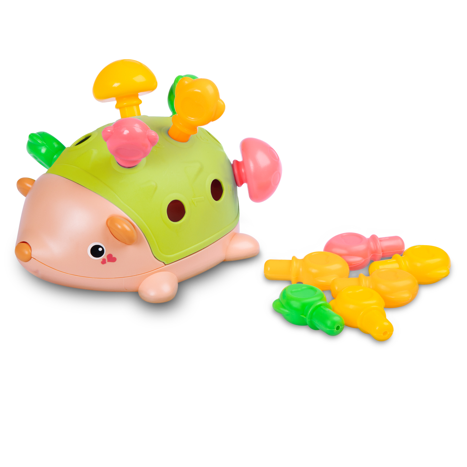 Каждое отверстие на спинке ёжика соответствует определенному цвету и цифре, что побуждает детей сопоставлять цвета, цифры и формы.