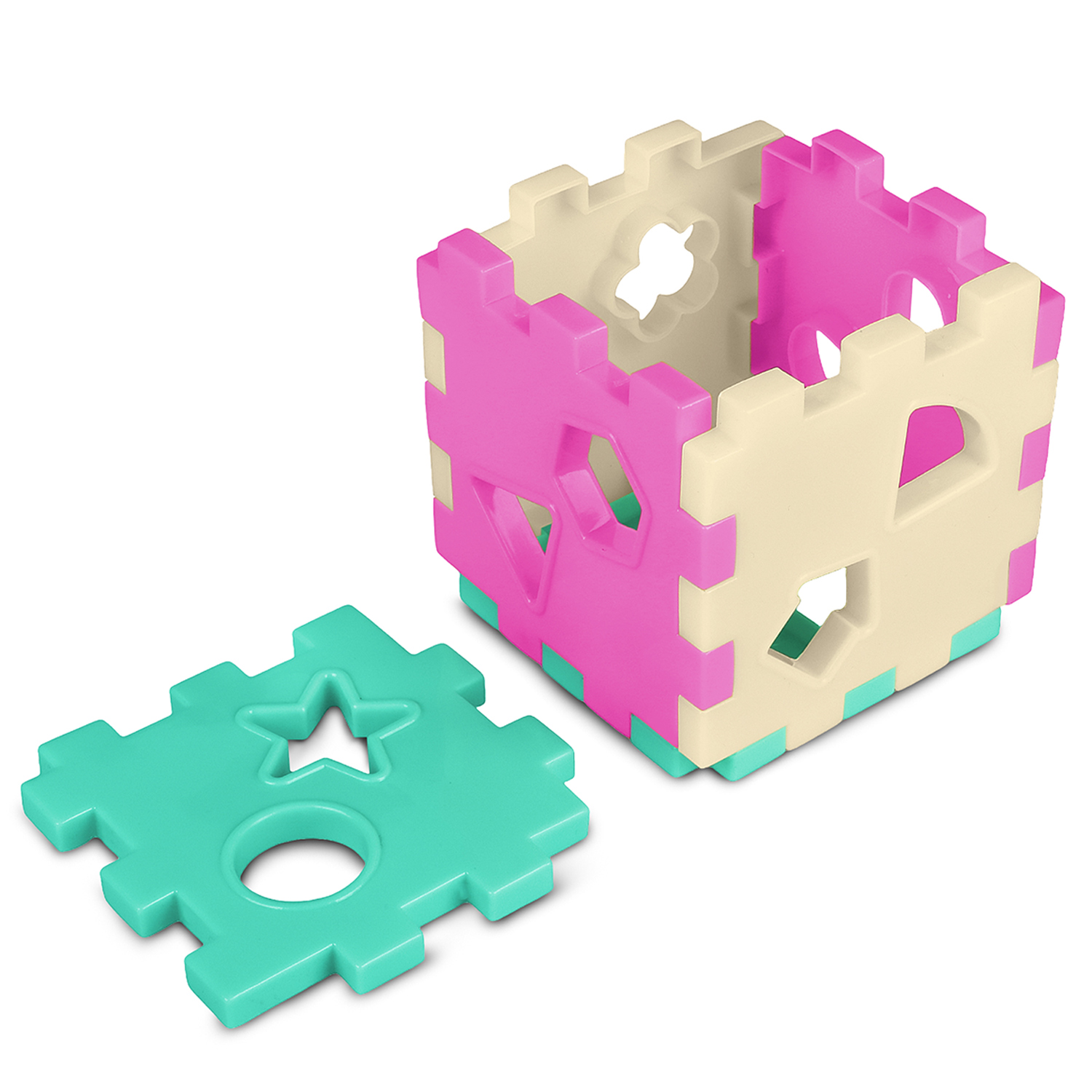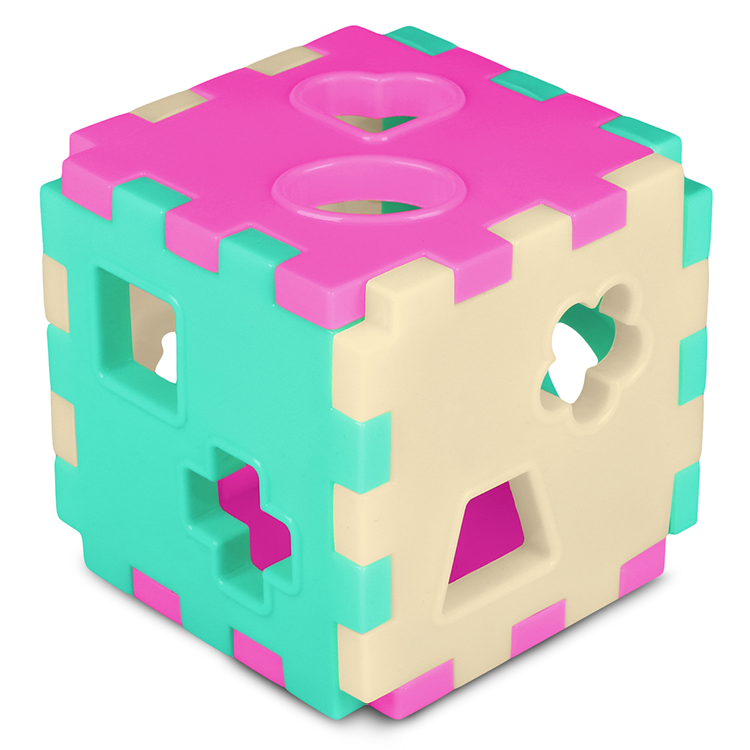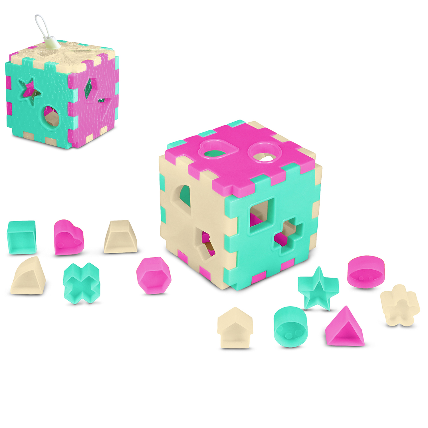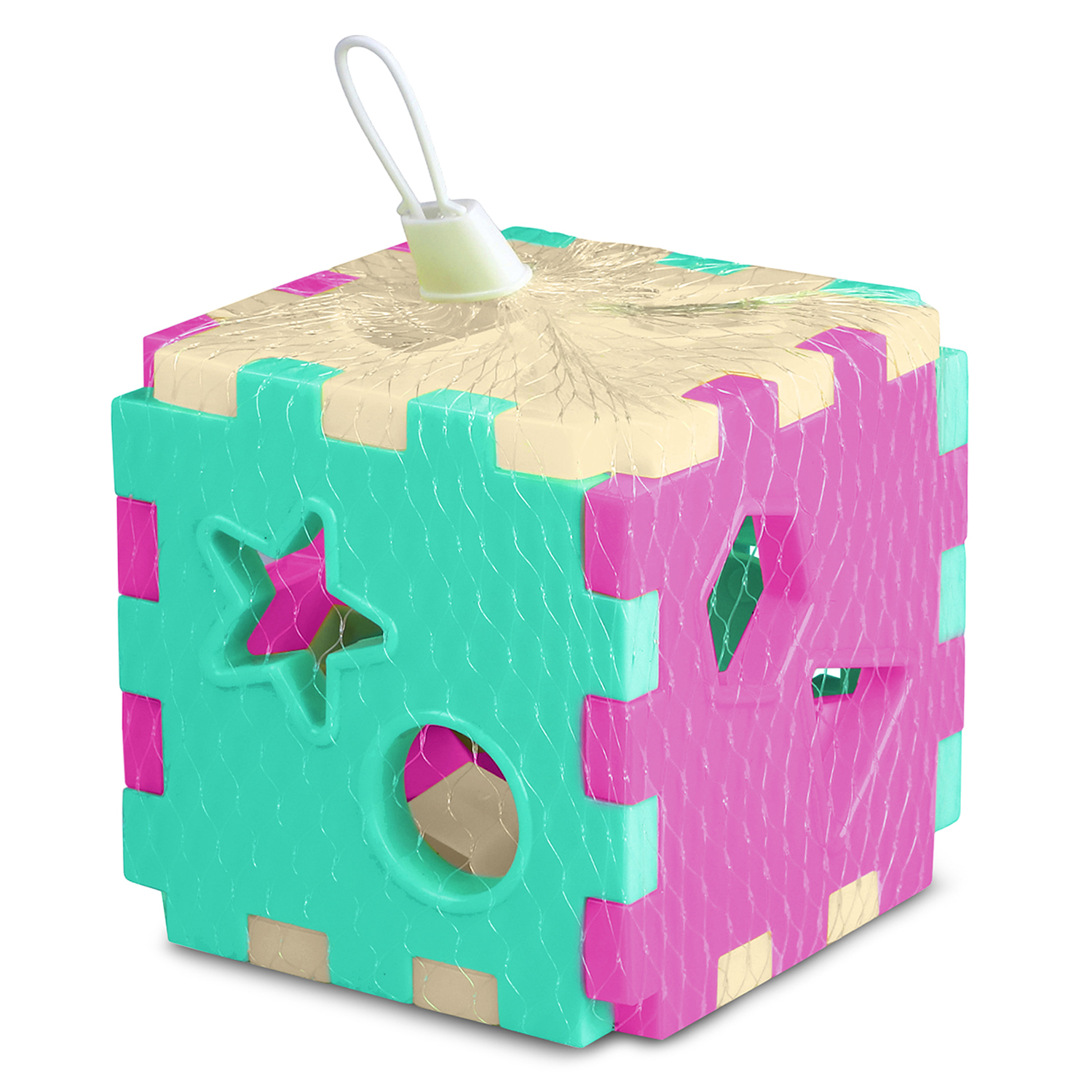 ТМ "Компания Друзей" Сортер КУБ, в сетке розово-бирюзово-молочный, в сетке 10,5х10,5х10,5 см