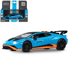 ТМ "Автопанорама" Машинка металл. 1:32 Lamborghini STO, голубой, инерция, откр. двери, в/к 17,5*12,5