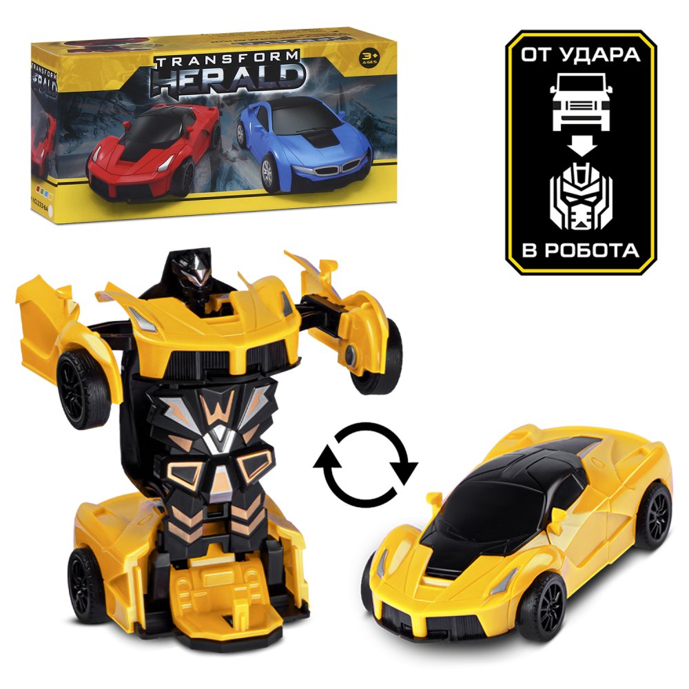 Машинка-робот фрикционная,трансформация в робота одной кнопкой,желтая, в/к 13,5*6,5*4,5 см