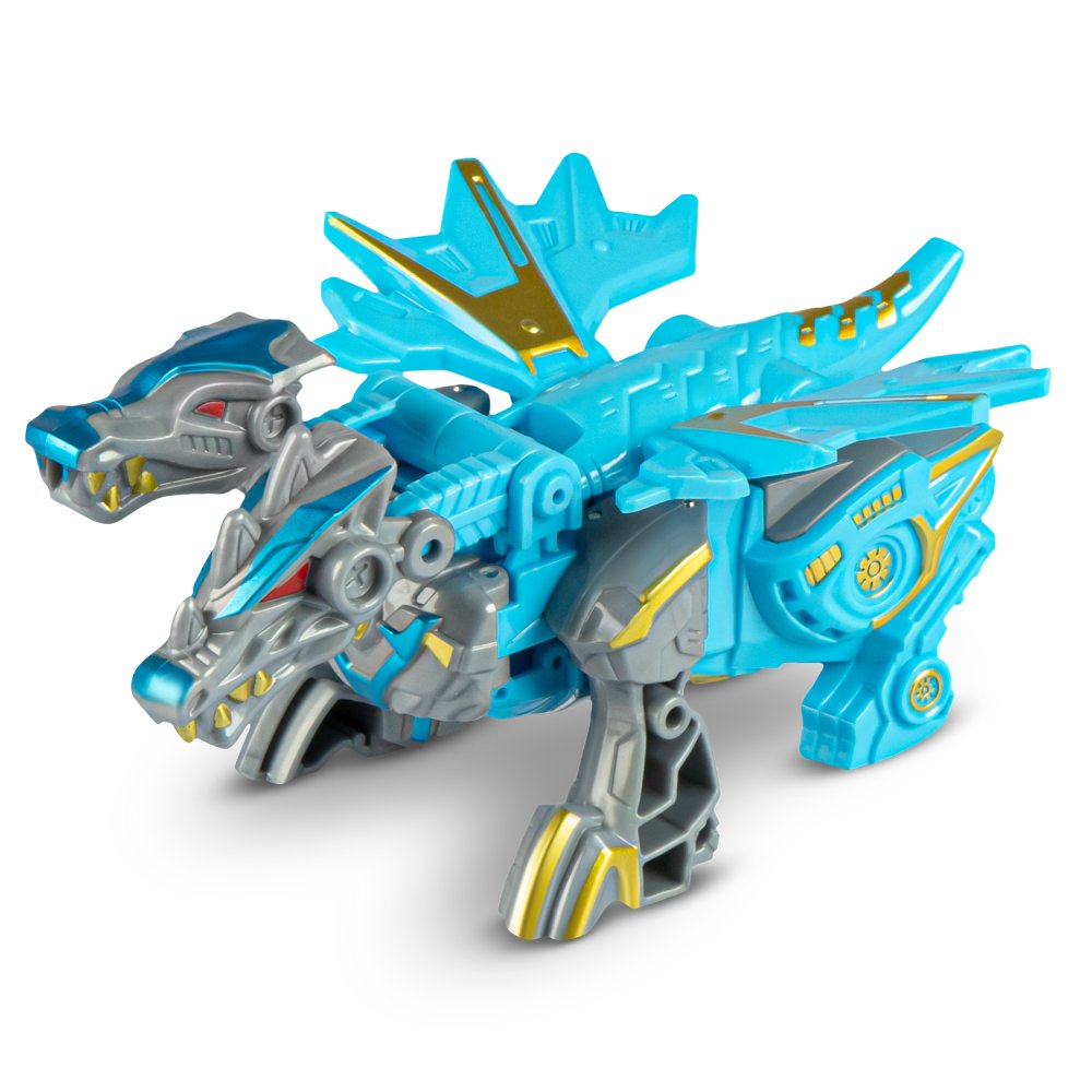 В разложенном виде игрушка представляет собой робота, который трансформируется в двуглавого дракона.