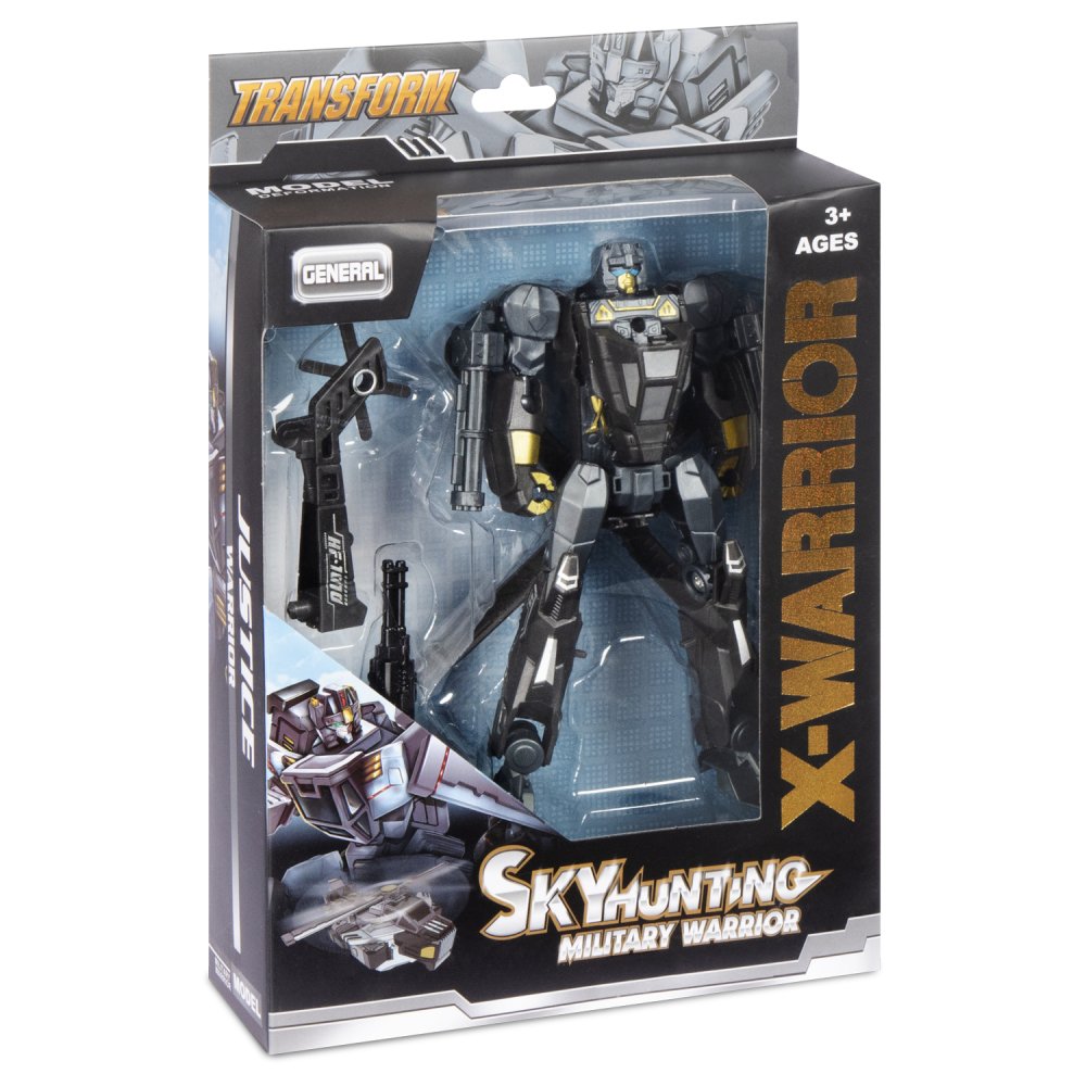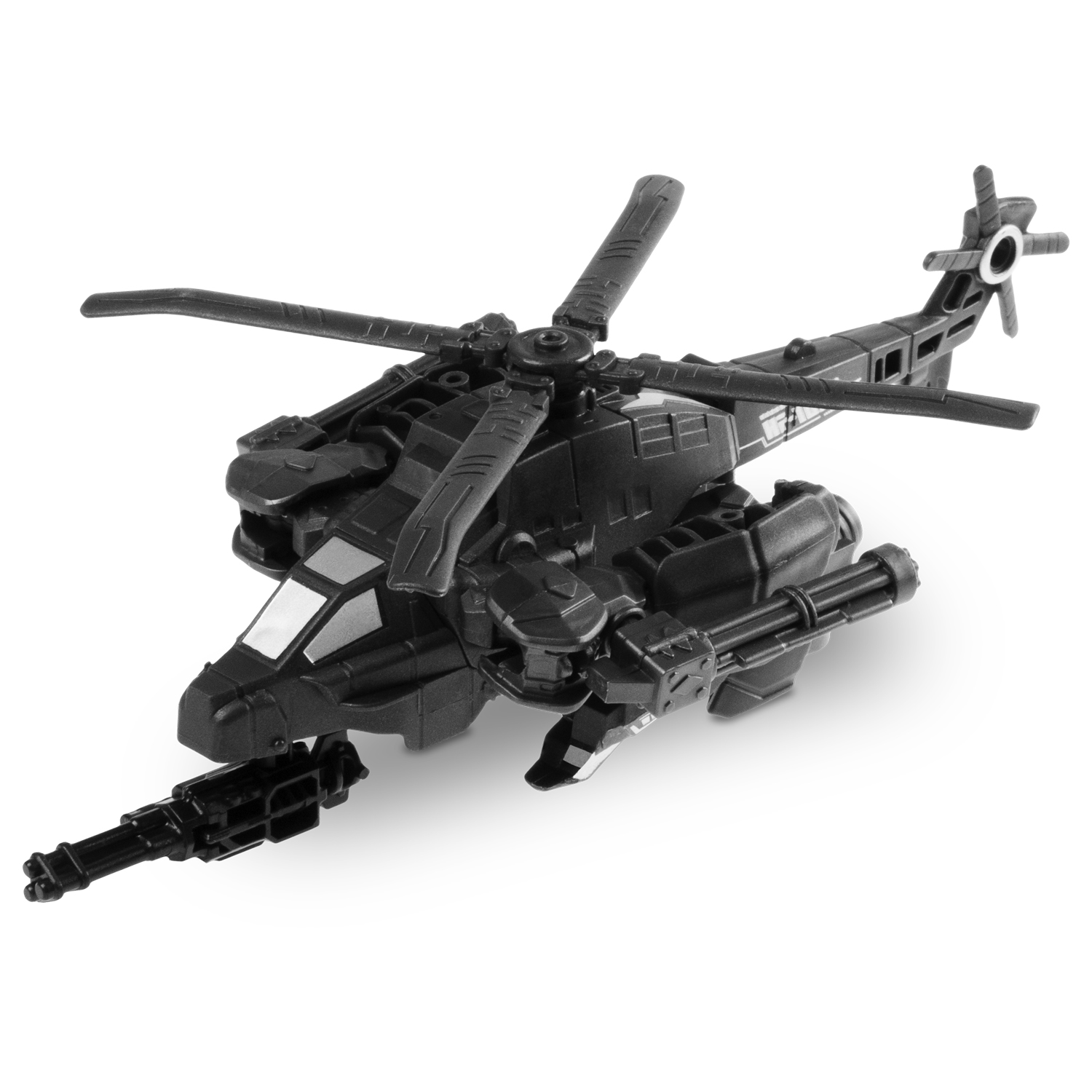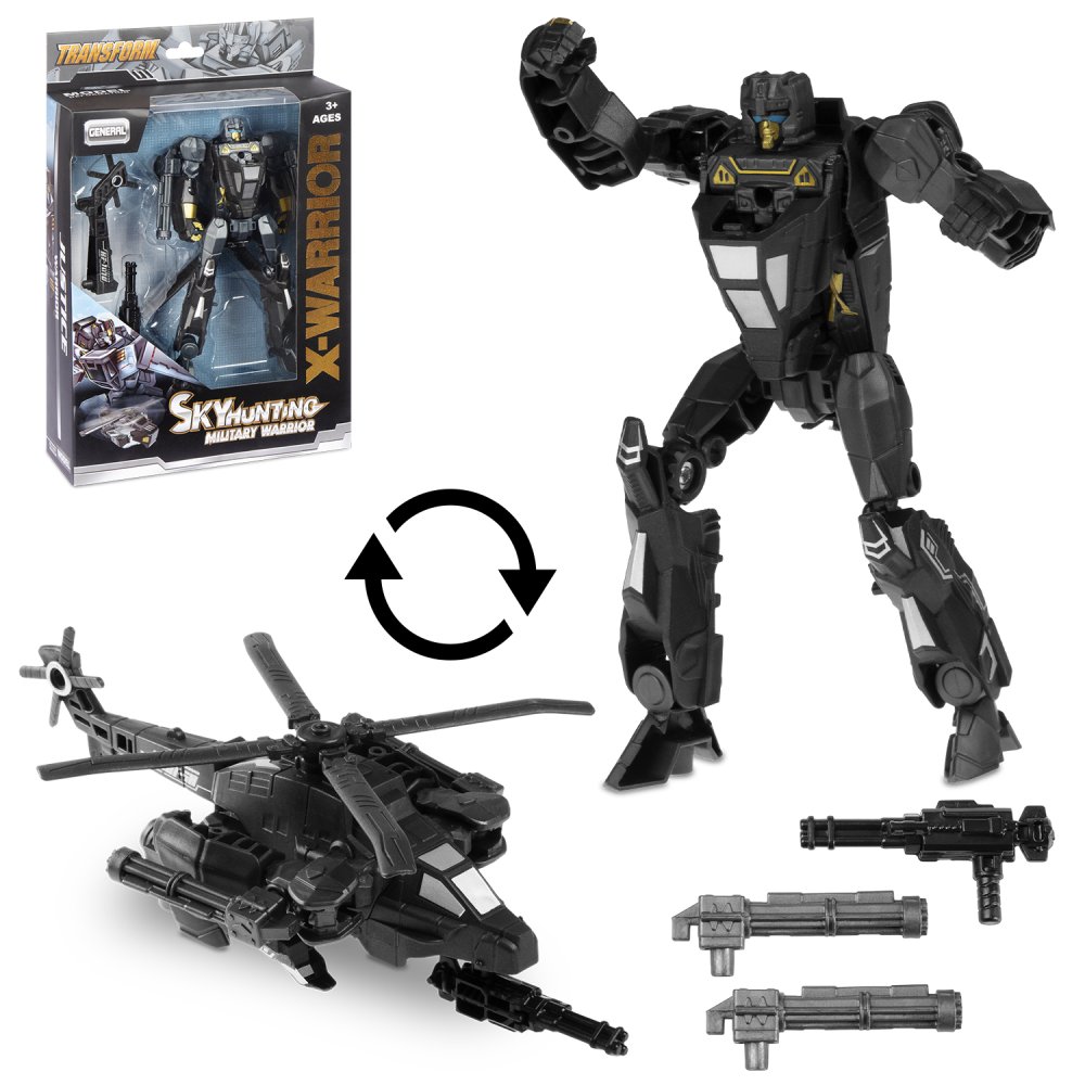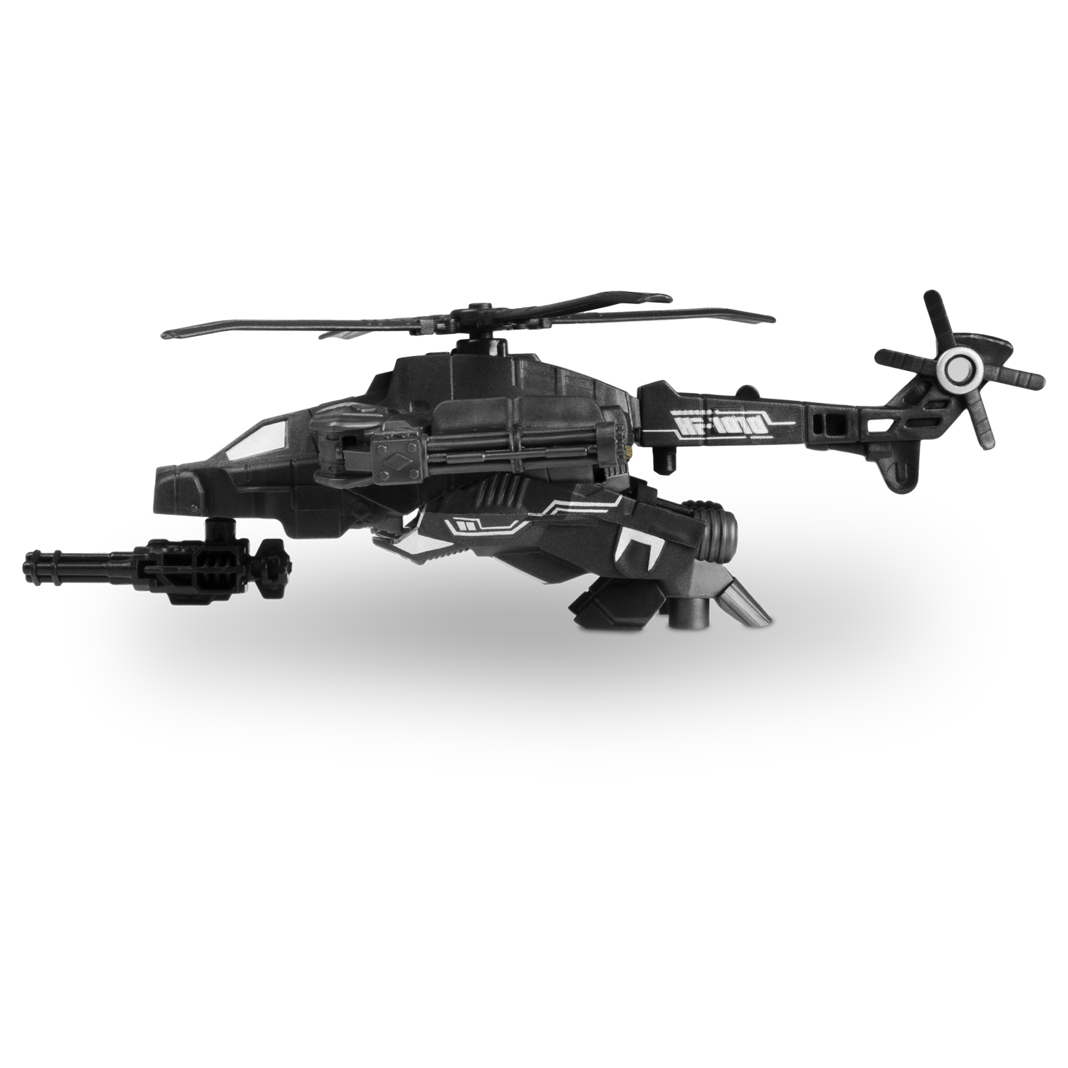 В разложенном виде игрушка представляет собой робота, который трансформируется в современный военный вертолёт.