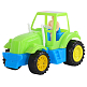 • Трактор детально проработан, имитация выхлопных труб, руль, фигурка водителя в кабине, разноцветные наклейки делают игрушку еще привлекательней и реалистичней.