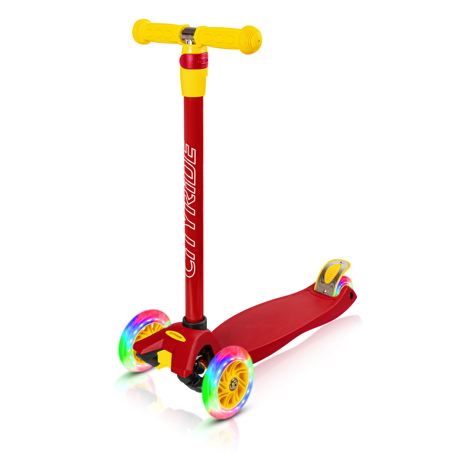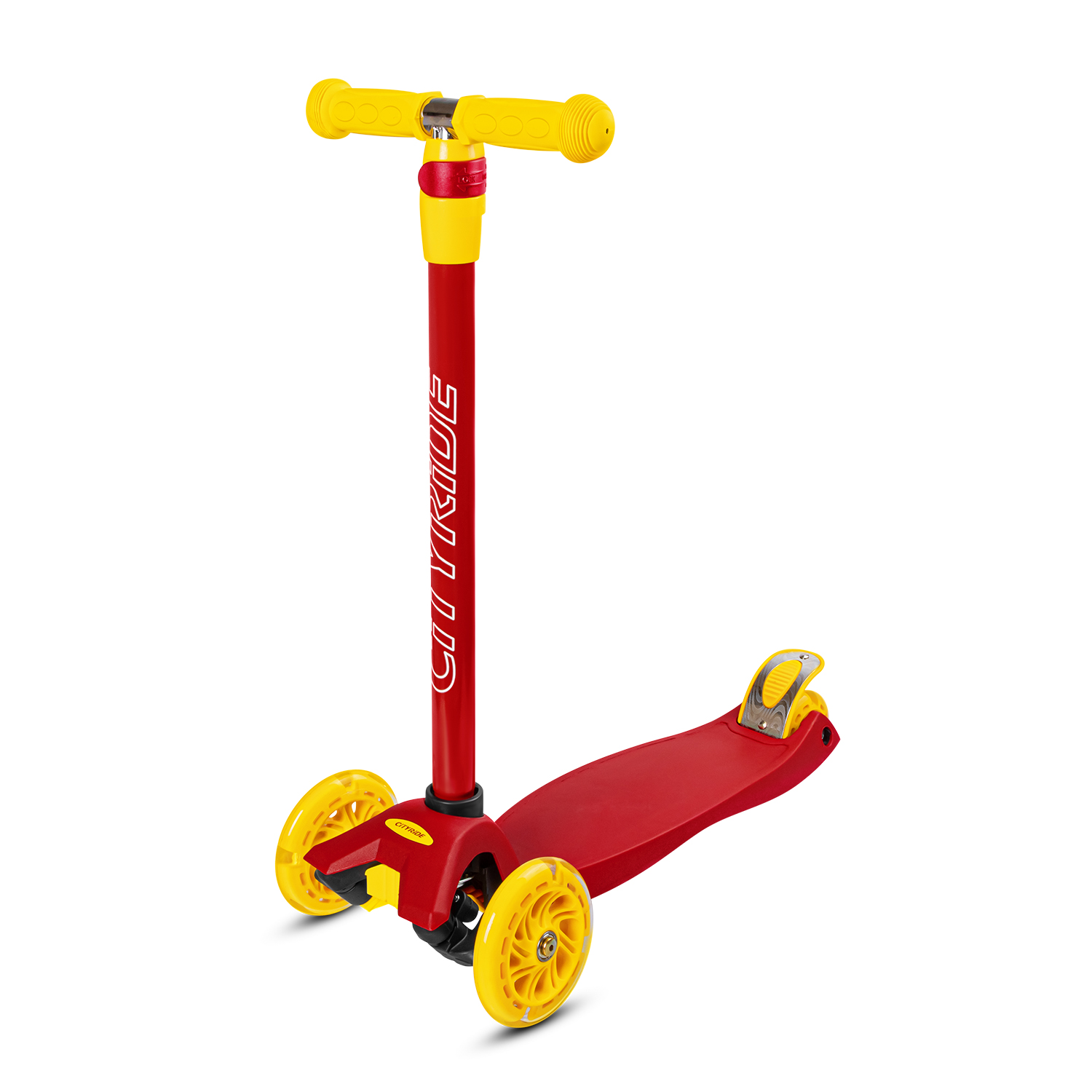 Самокат трехколесный CityRide, пакет, Дека: PP+нейлон, колеса PU 120/76 свет, руль металл телеск., цвет красный