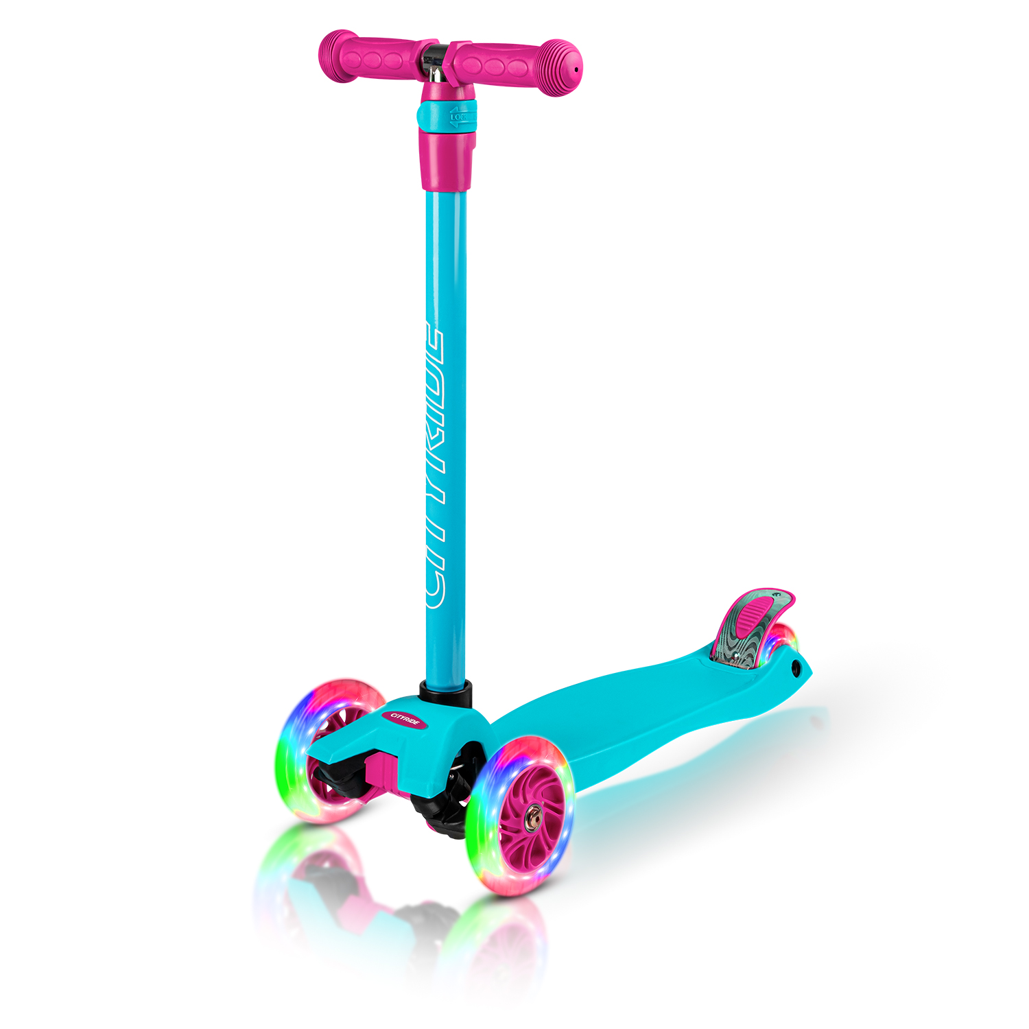 Самокат трехколесный CityRide, пакет, Дека: PP+нейлон, колеса PU 120/76 свет, руль металл телеск.,