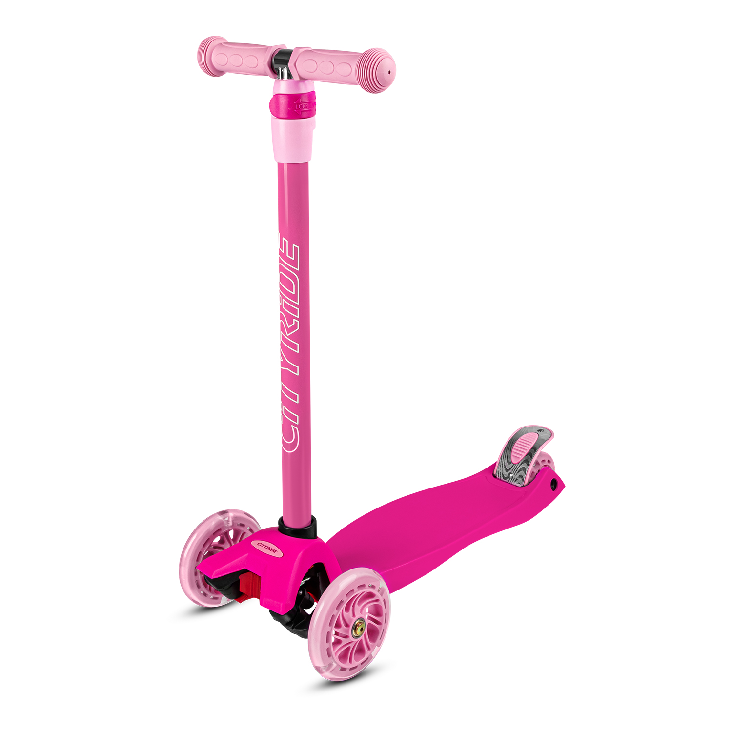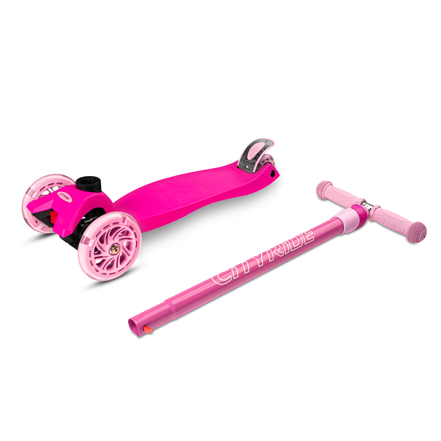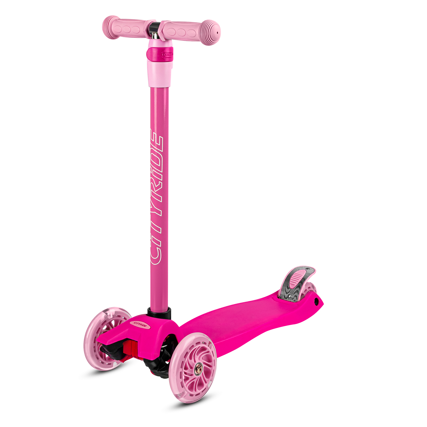Самокат трехколесный CityRide, пакет, Дека: PP+нейлон, колеса PU 120/76 свет, руль металл телеск., цвет розовый