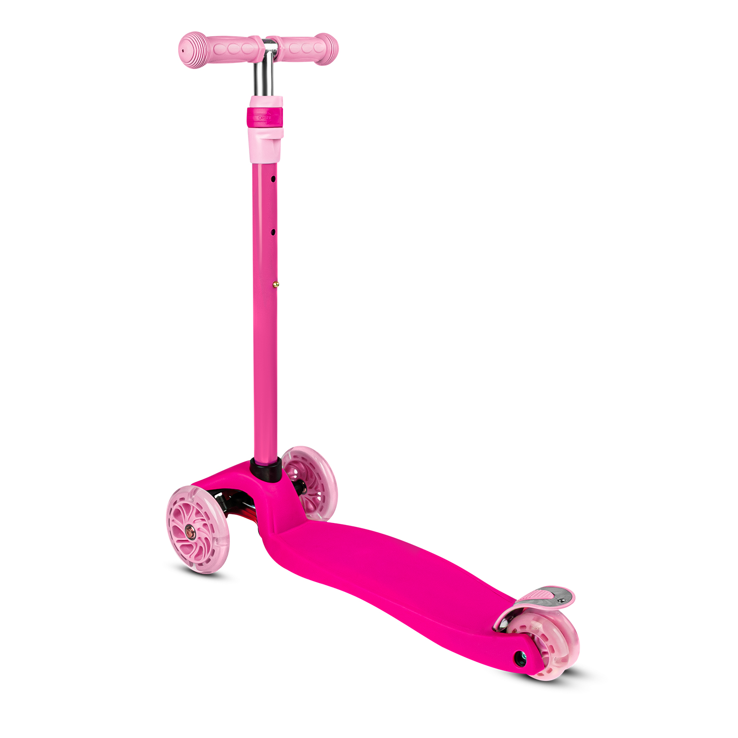 Регулируемый руль можно легко настроить в соответствии с ростом ребёнка, что гарантирует удобство и уверенность во время катания по городу. Прорезиненные ручки делают длительные поездки приятными, а лёгкий вес самоката позволяет малышу без труда поднимать его на бордюры и переносить по лестницам, что делает катание еще более удобным и веселым.