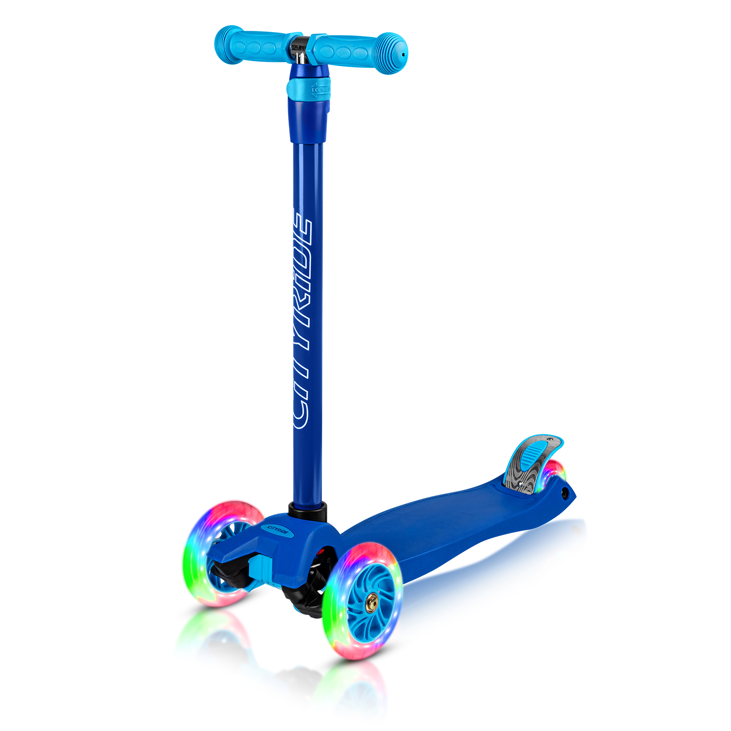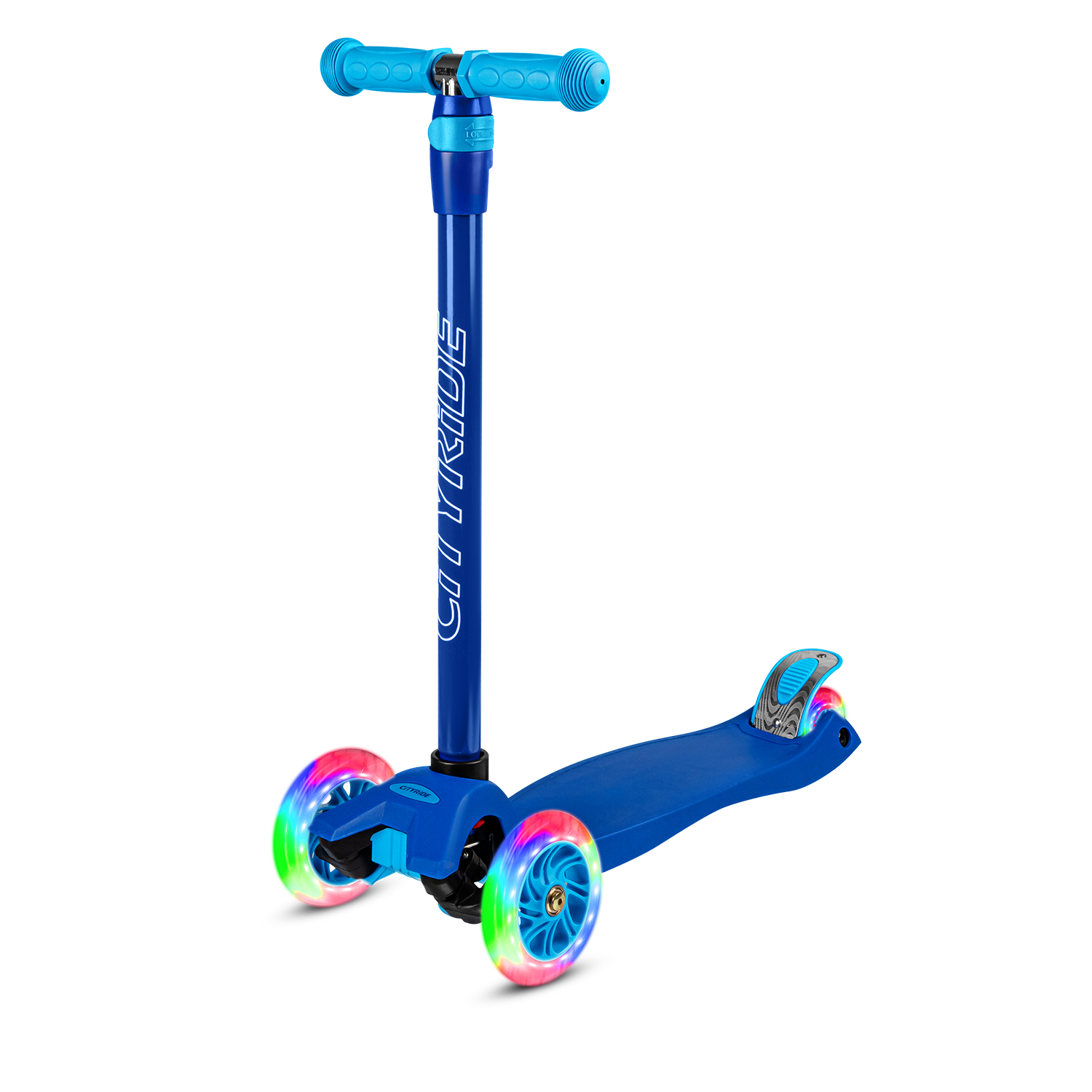 Самокат трехколесный CityRide, пакет, Дека: PP+нейлон, колеса PU 120/76 свет, руль металл телеск., цвет синий