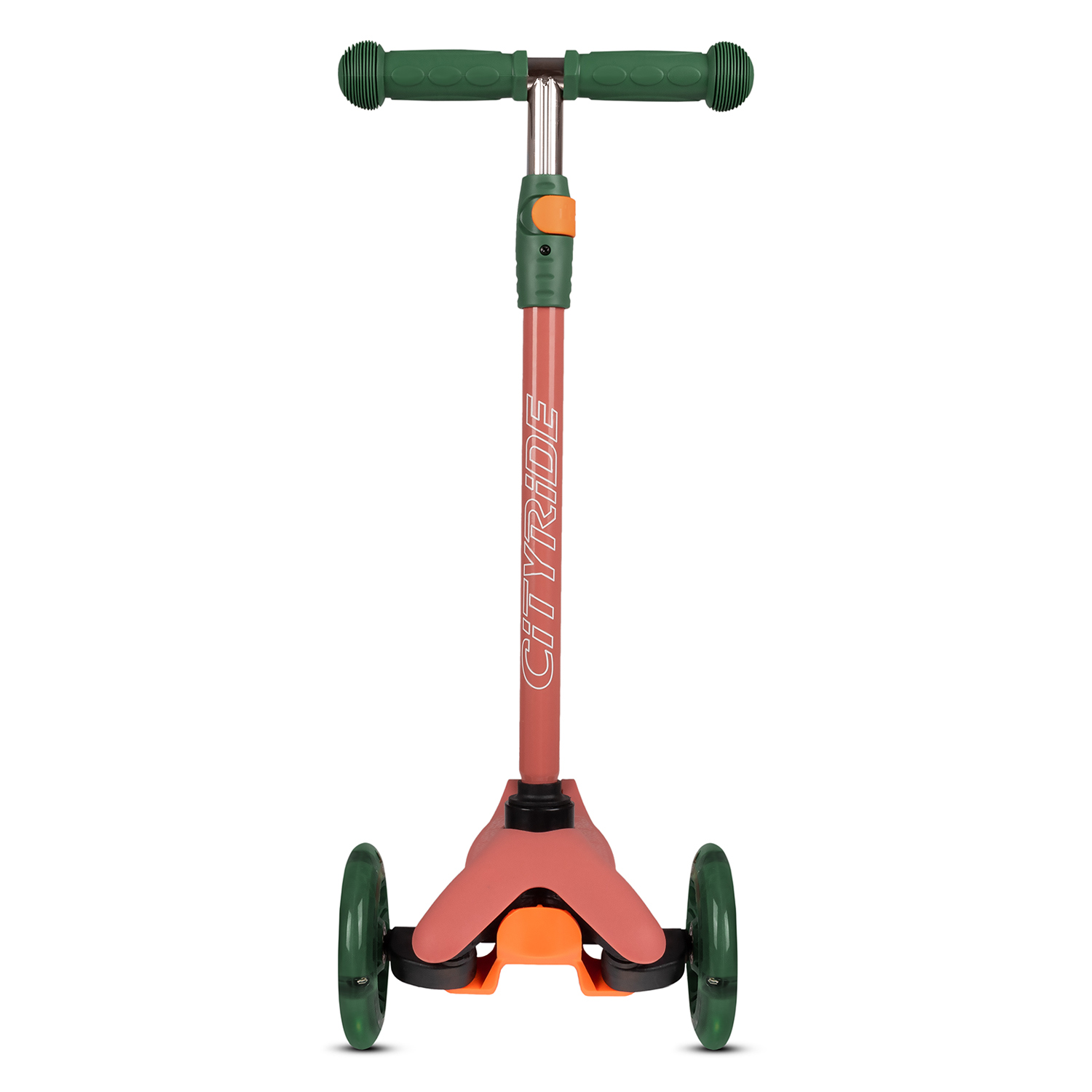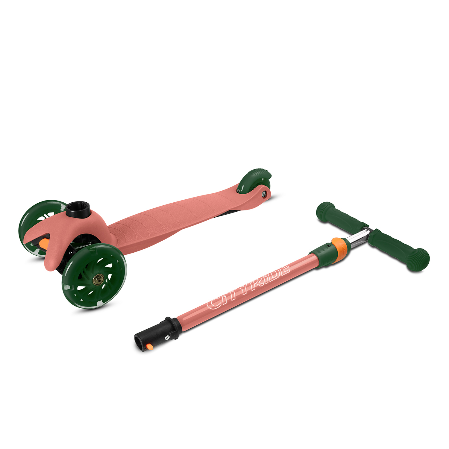 Самокат трехколесный CityRide, пакет, Дека: PP+нейлон, колеса PU 120/76 свет, руль металл телеск., цвет оранжевый