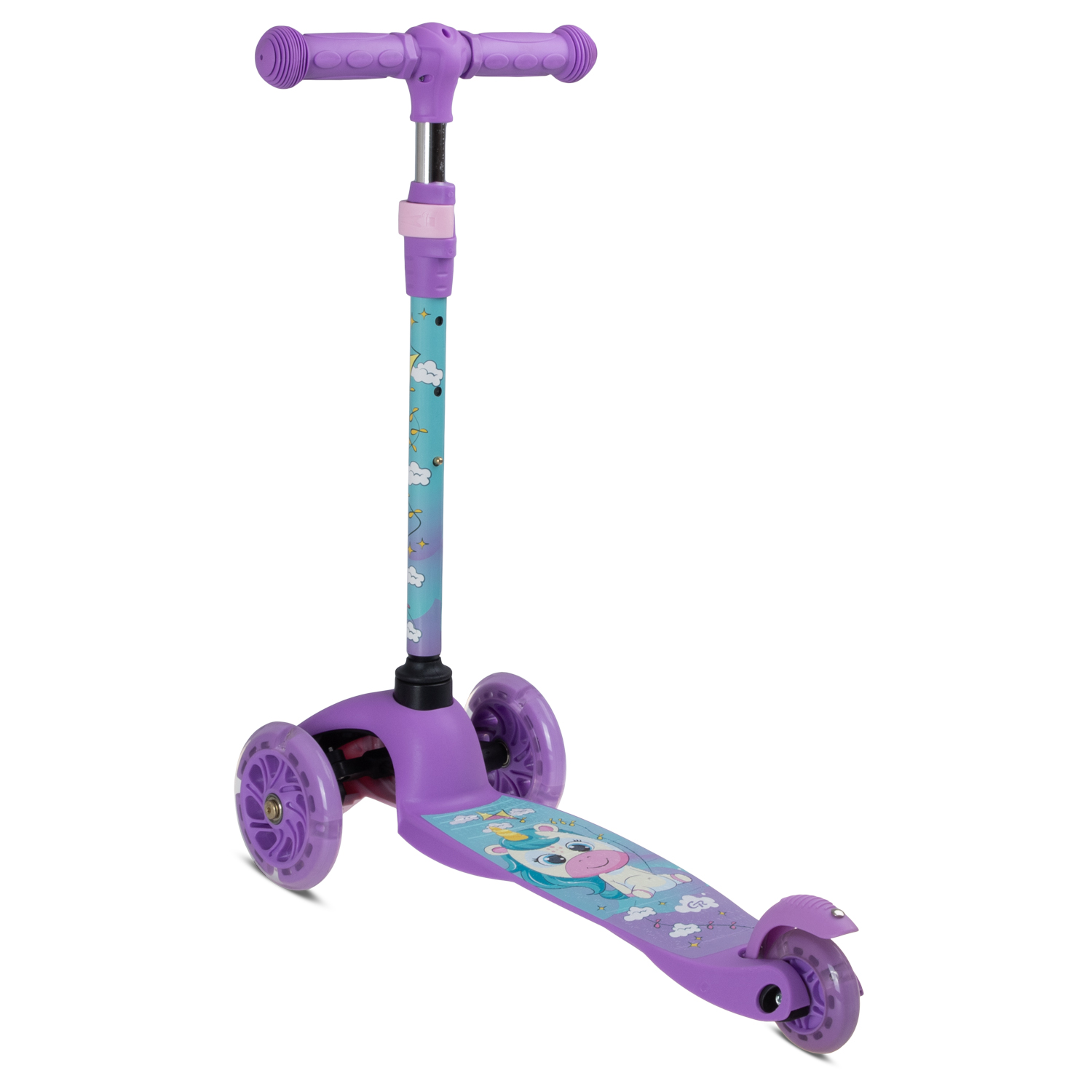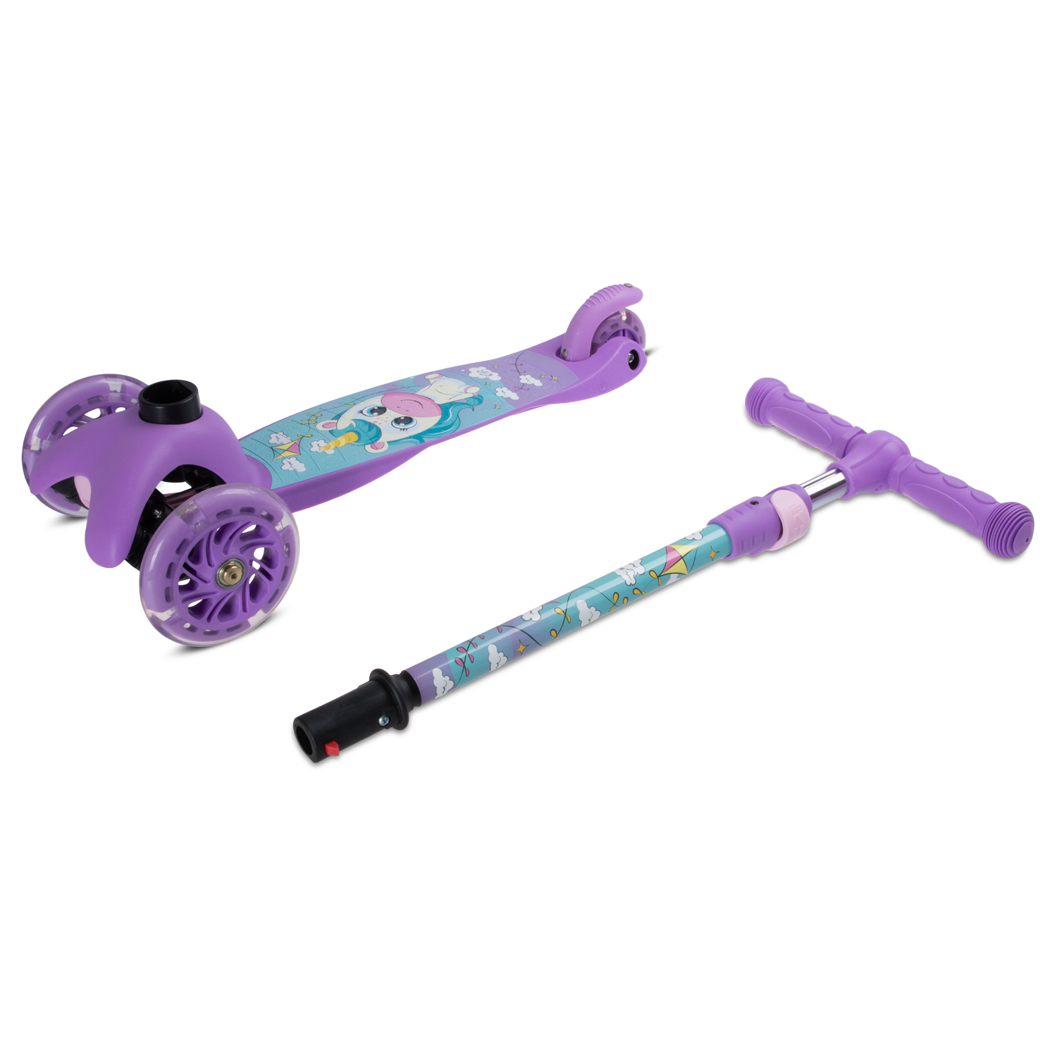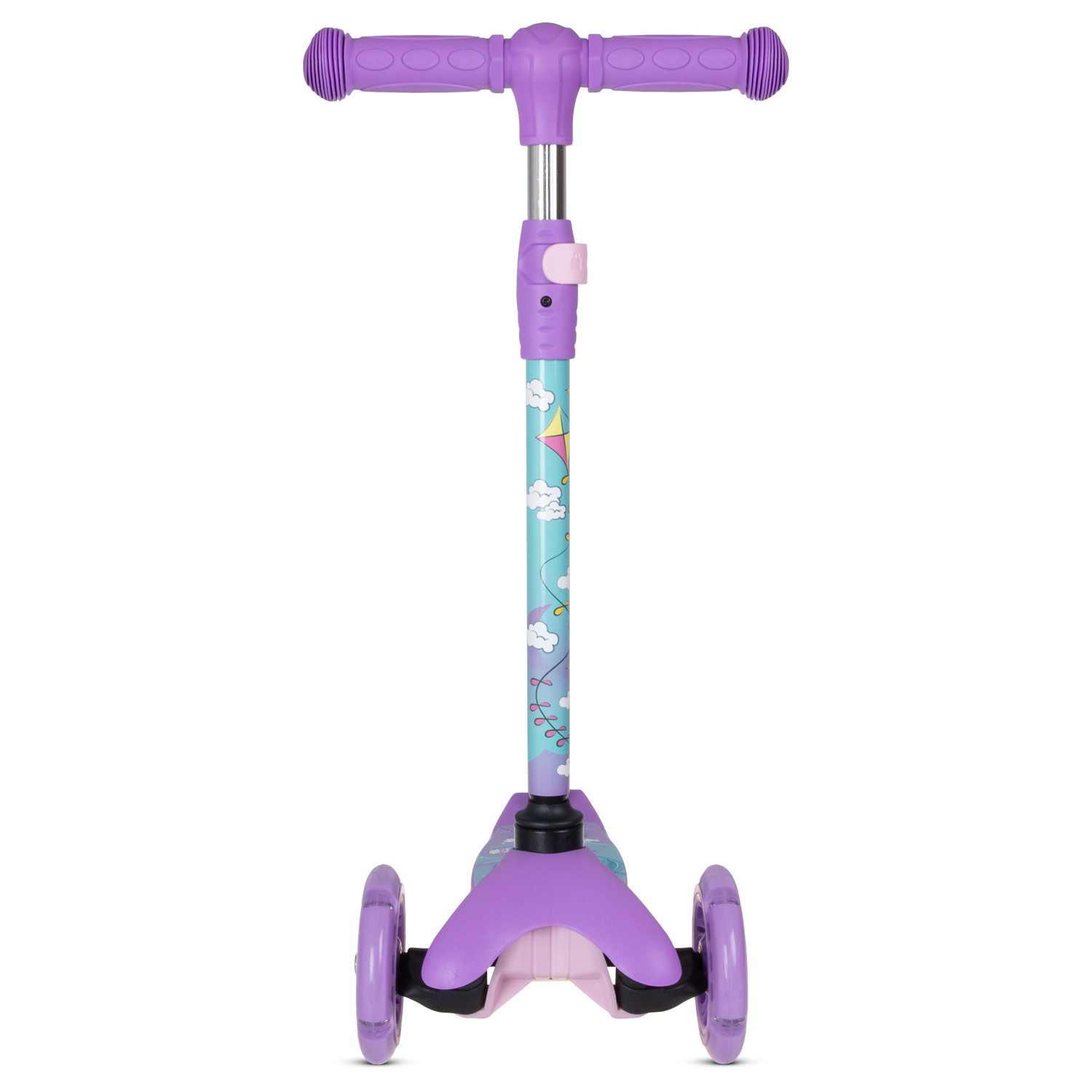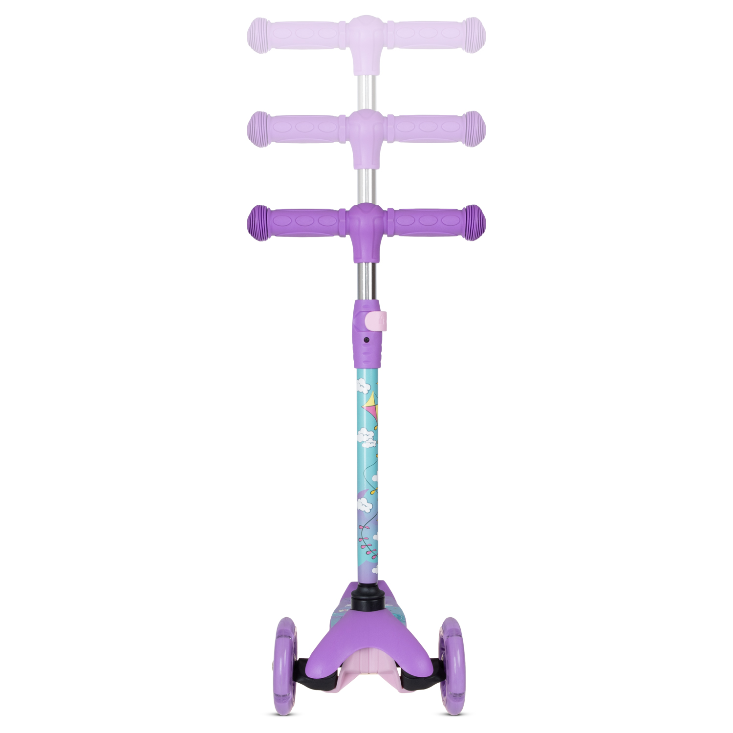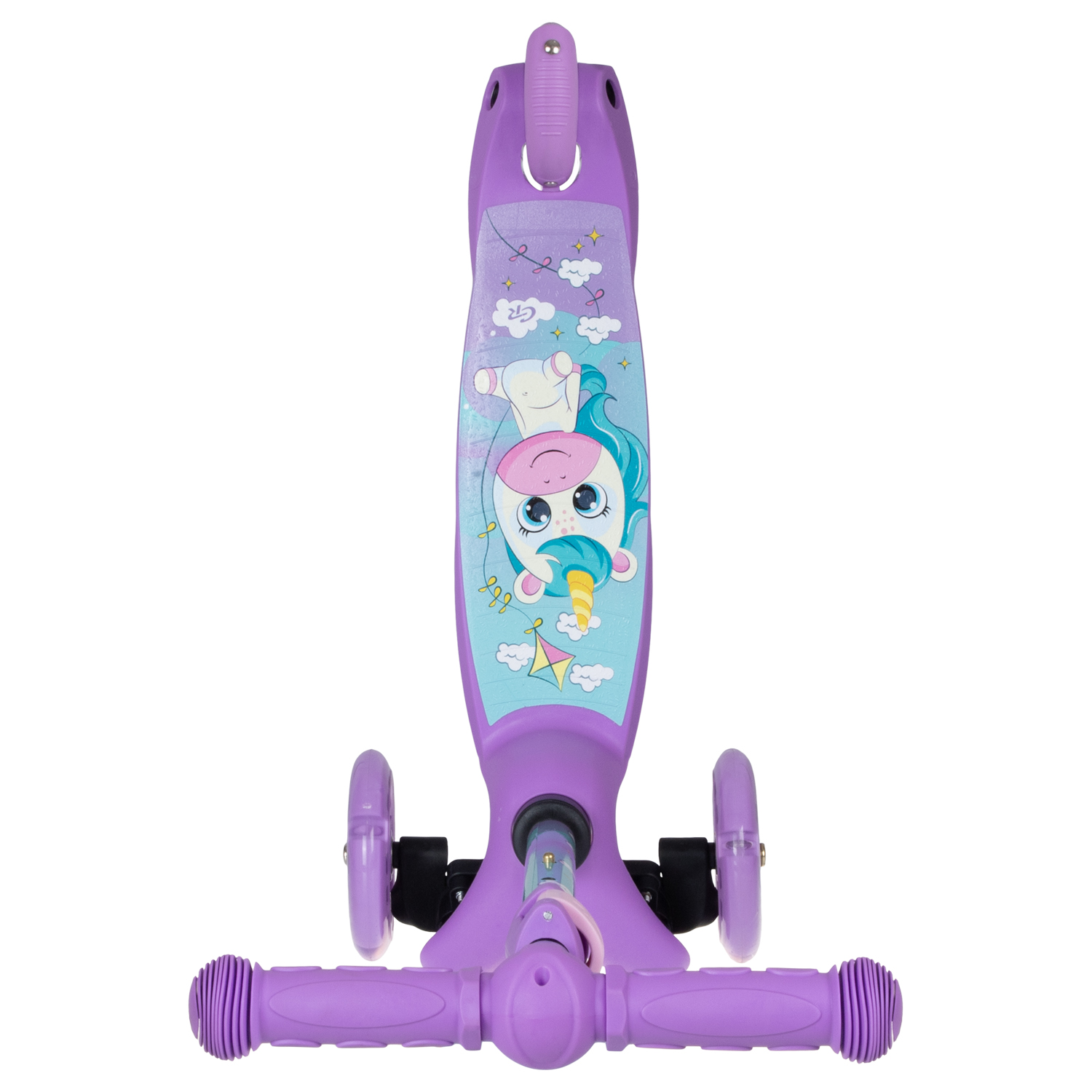 Детский трехколесный самокат – отличный самокат для веселых поездок • Материал основы: PP + нейлон • Красочный рисунок на платформе непременно понравится юному гонщику • Телескопический руль обеспечит идеальную настройку под рост ребенка • Резиновая рукоятка на руле имеет специальные ограничители, которые предотвратят соскальзывание рук и сделают поездку более безопасной • Рулевая стойка наклоняется в нужную сторону, что позволяет уверенно держаться в поворотах, сохраняя равновесие • Переднее колесо PU диаметром 120 мм и заднее колесо диаметром 76 мм придают самокату хорошую устойчивость • Колеса со светодиодами сделают катание более веселым и интересным • Надежный ножной тормоз позволит быстро остановить самокат перед препятствием • Подшипник ABEC-5 обеспечивает плавный ход и превосходную маневренность Размеры: 53 х 23 х 70 см Размеры основы: 51 х 11 см Максимальная нагрузка: 35 кг Возраст: от 3 лет