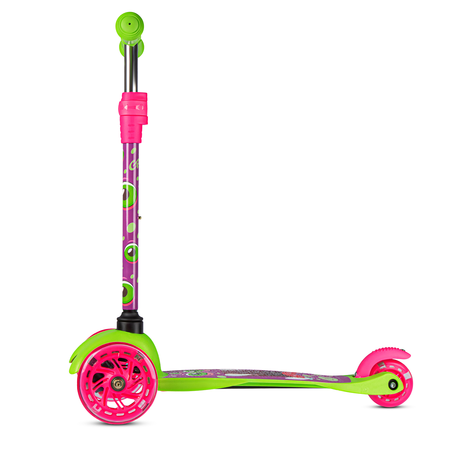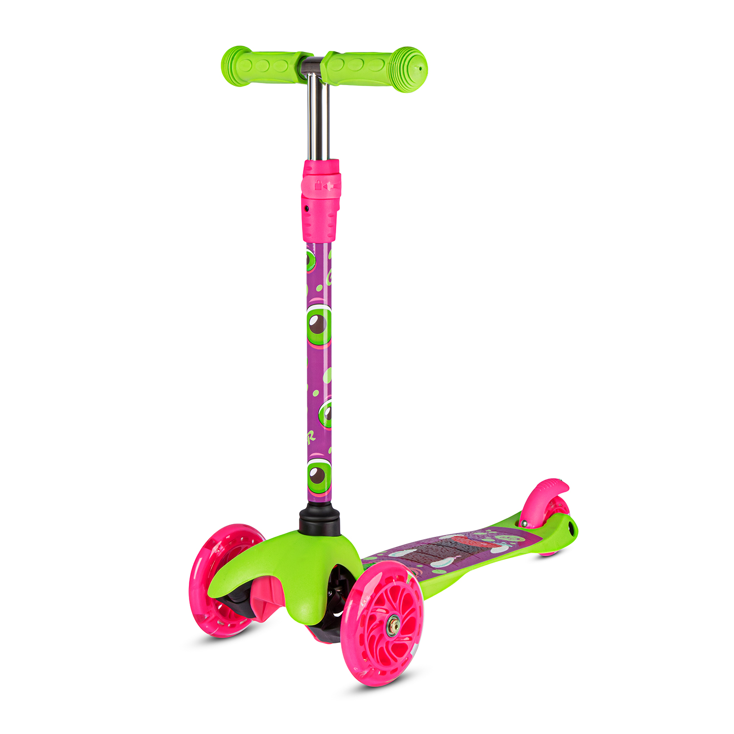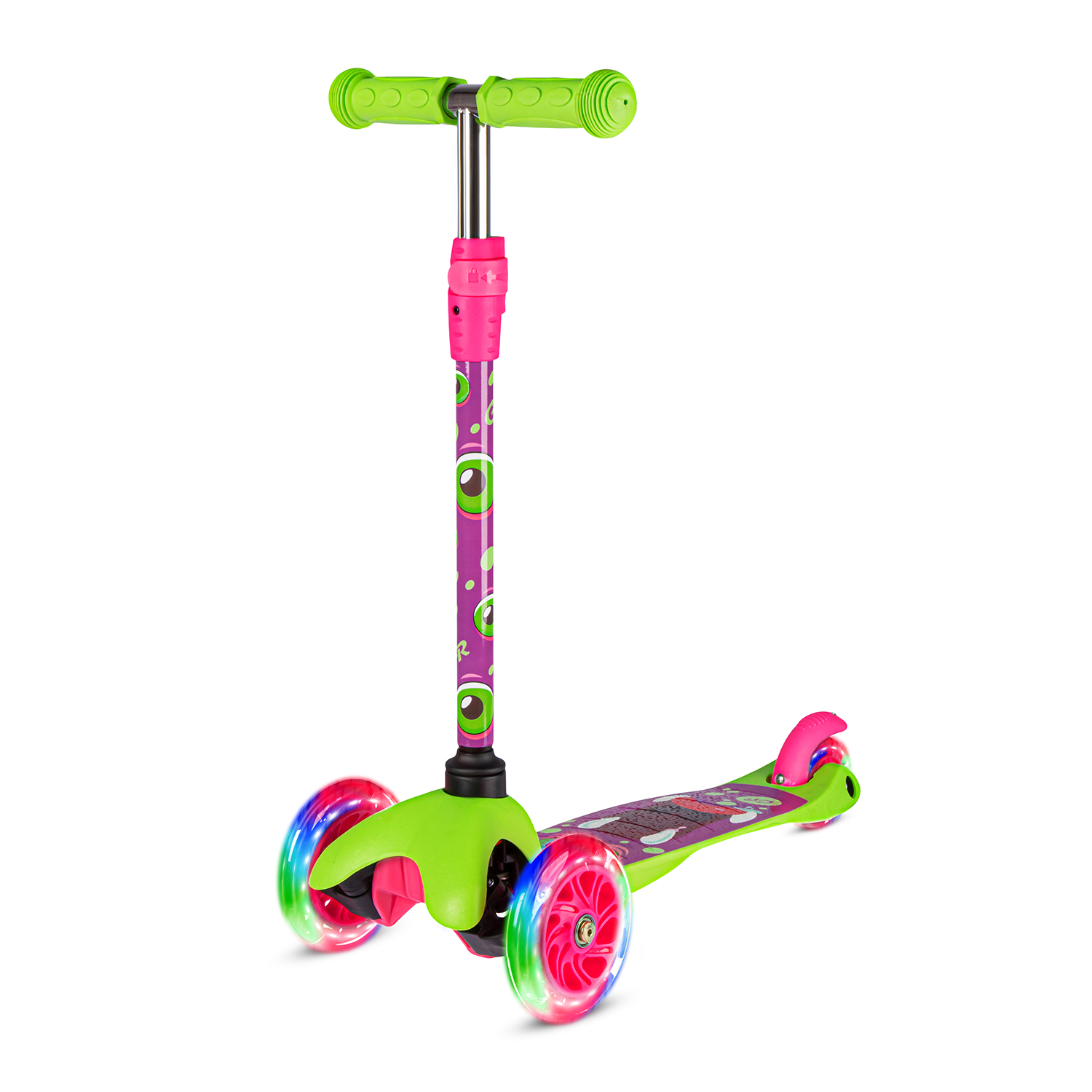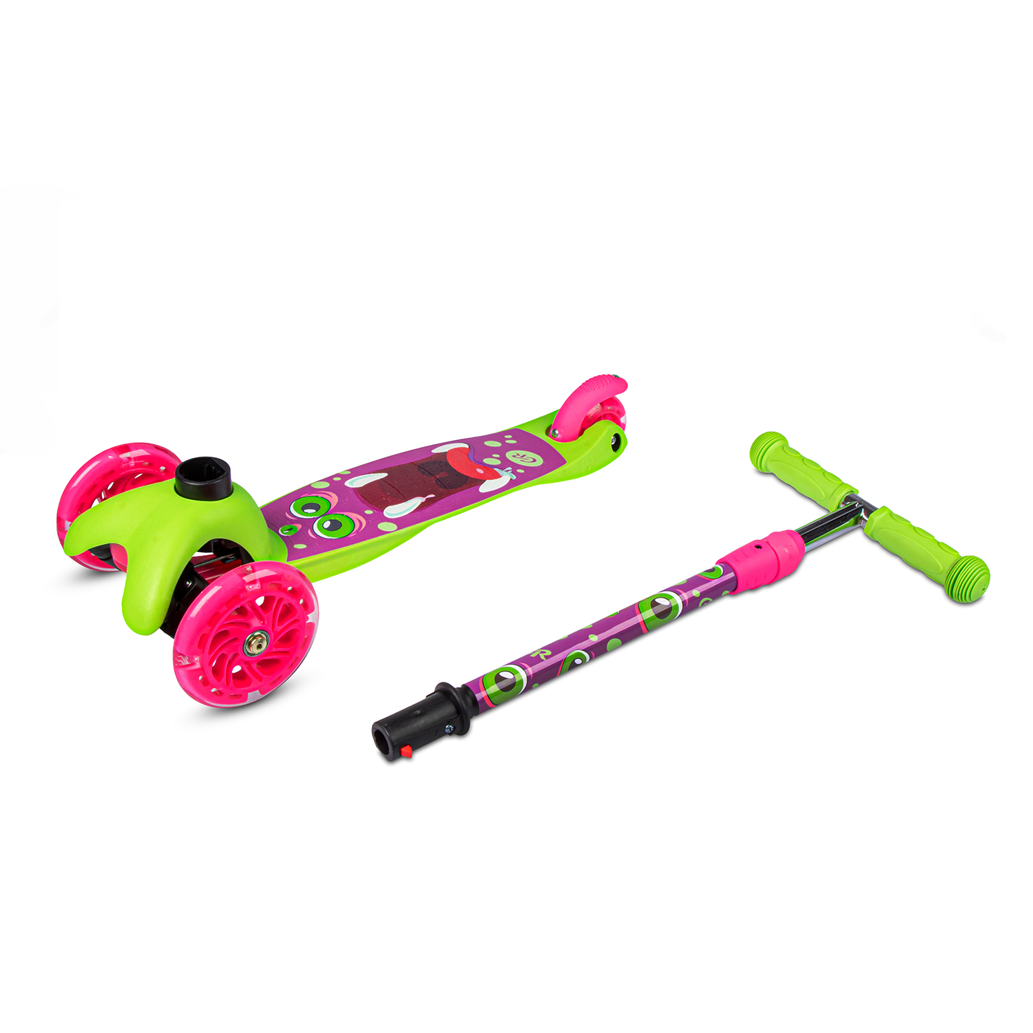 Детский трехколесный самокат – отличный самокат для веселых поездок • Материал основы: PP + нейлон • Красочный рисунок на платформе непременно понравится юному гонщику • Телескопический руль обеспечит идеальную настройку под рост ребенка • Резиновая рукоятка на руле имеет специальные ограничители, которые предотвратят соскальзывание рук и сделают поездку более безопасной • Рулевая стойка наклоняется в нужную сторону, что позволяет уверенно держаться в поворотах, сохраняя равновесие • Переднее колесо PU диаметром 120 мм и заднее колесо диаметром 76 мм придают самокату хорошую устойчивость • Колеса со светодиодами сделают катание более веселым и интересным • Надежный ножной тормоз позволит быстро остановить самокат перед препятствием • Подшипник ABEC-5 обеспечивает плавный ход и превосходную маневренность Размеры: 53 х 23 х 70 см Размеры основы: 51 х 11 см Максимальная нагрузка: 35 кг Возраст: от 3 лет