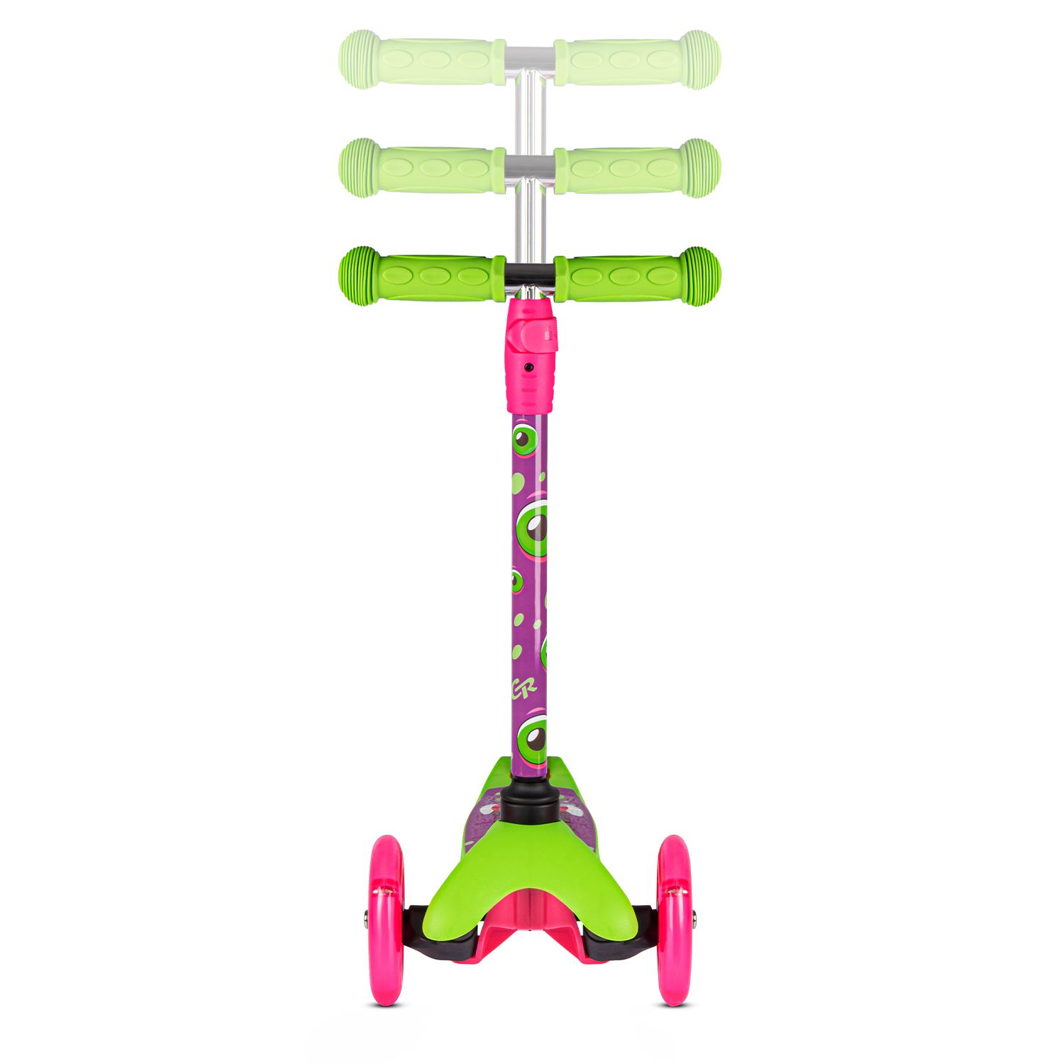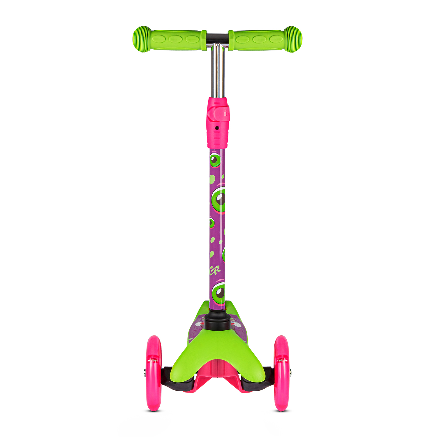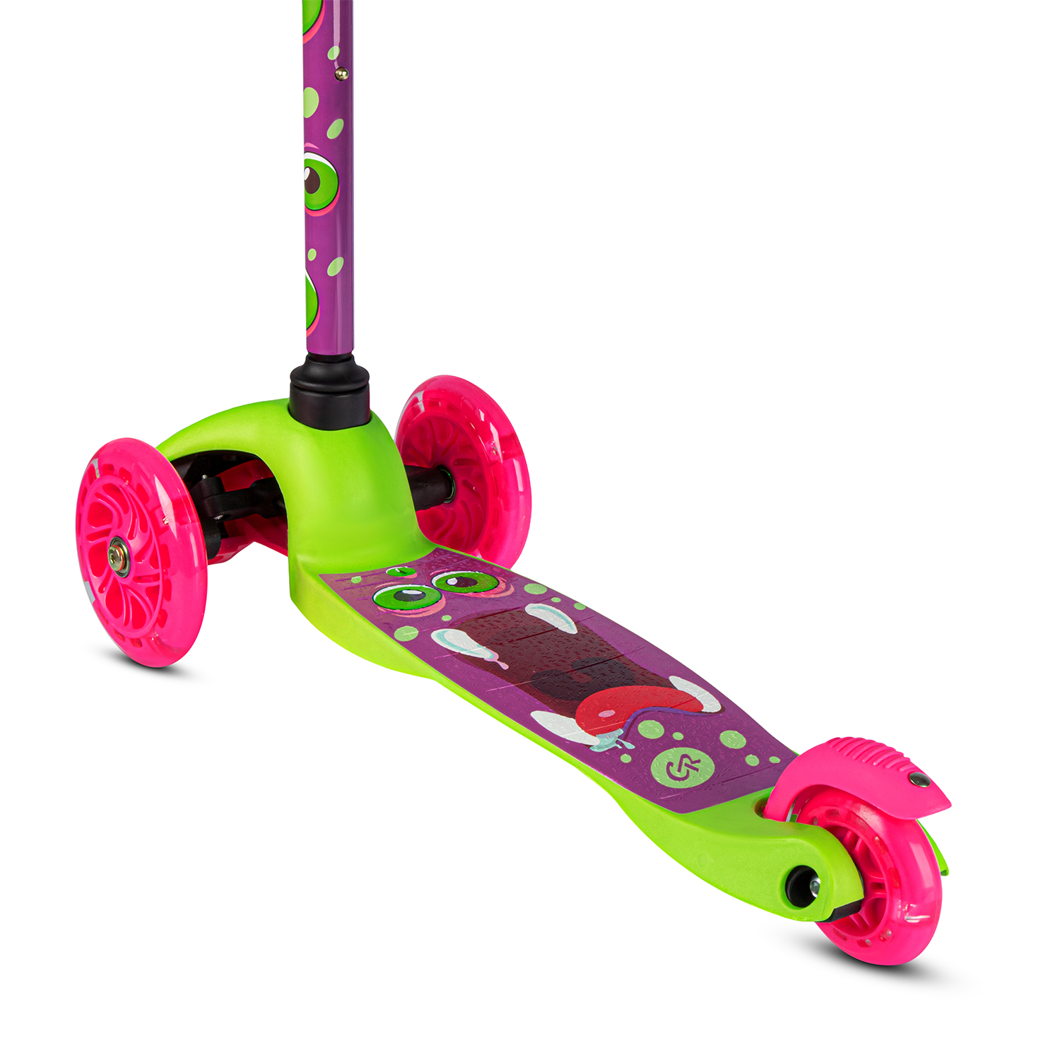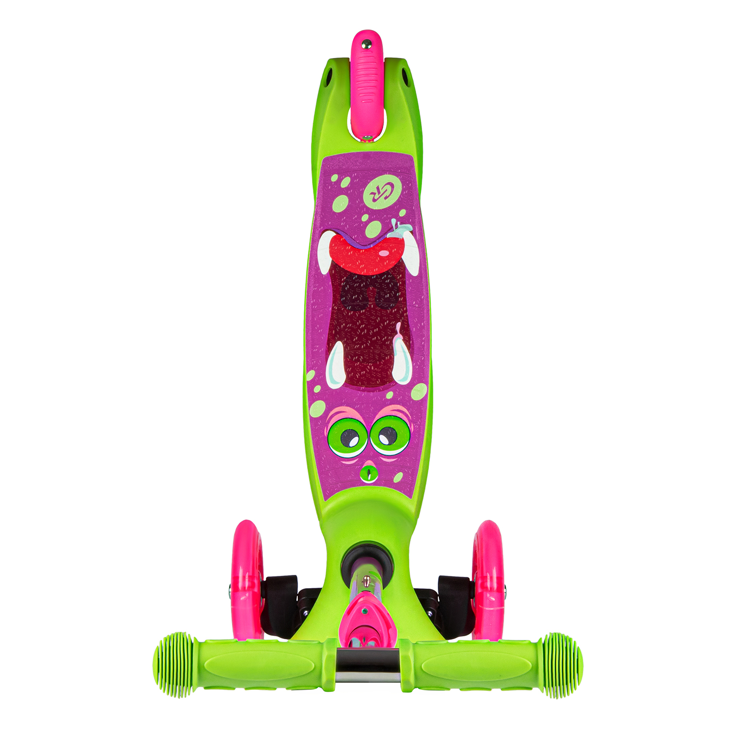 Детский трехколесный самокат – отличный самокат для веселых поездок • Материал основы: PP + нейлон • Красочный рисунок на платформе непременно понравится юному гонщику • Телескопический руль обеспечит идеальную настройку под рост ребенка • Резиновая рукоятка на руле имеет специальные ограничители, которые предотвратят соскальзывание рук и сделают поездку более безопасной • Рулевая стойка наклоняется в нужную сторону, что позволяет уверенно держаться в поворотах, сохраняя равновесие • Переднее колесо PU диаметром 120 мм и заднее колесо диаметром 76 мм придают самокату хорошую устойчивость • Колеса со светодиодами сделают катание более веселым и интересным • Надежный ножной тормоз позволит быстро остановить самокат перед препятствием • Подшипник ABEC-5 обеспечивает плавный ход и превосходную маневренность Размеры: 53 х 23 х 70 см Размеры основы: 51 х 11 см Максимальная нагрузка: 35 кг Возраст: от 3 лет