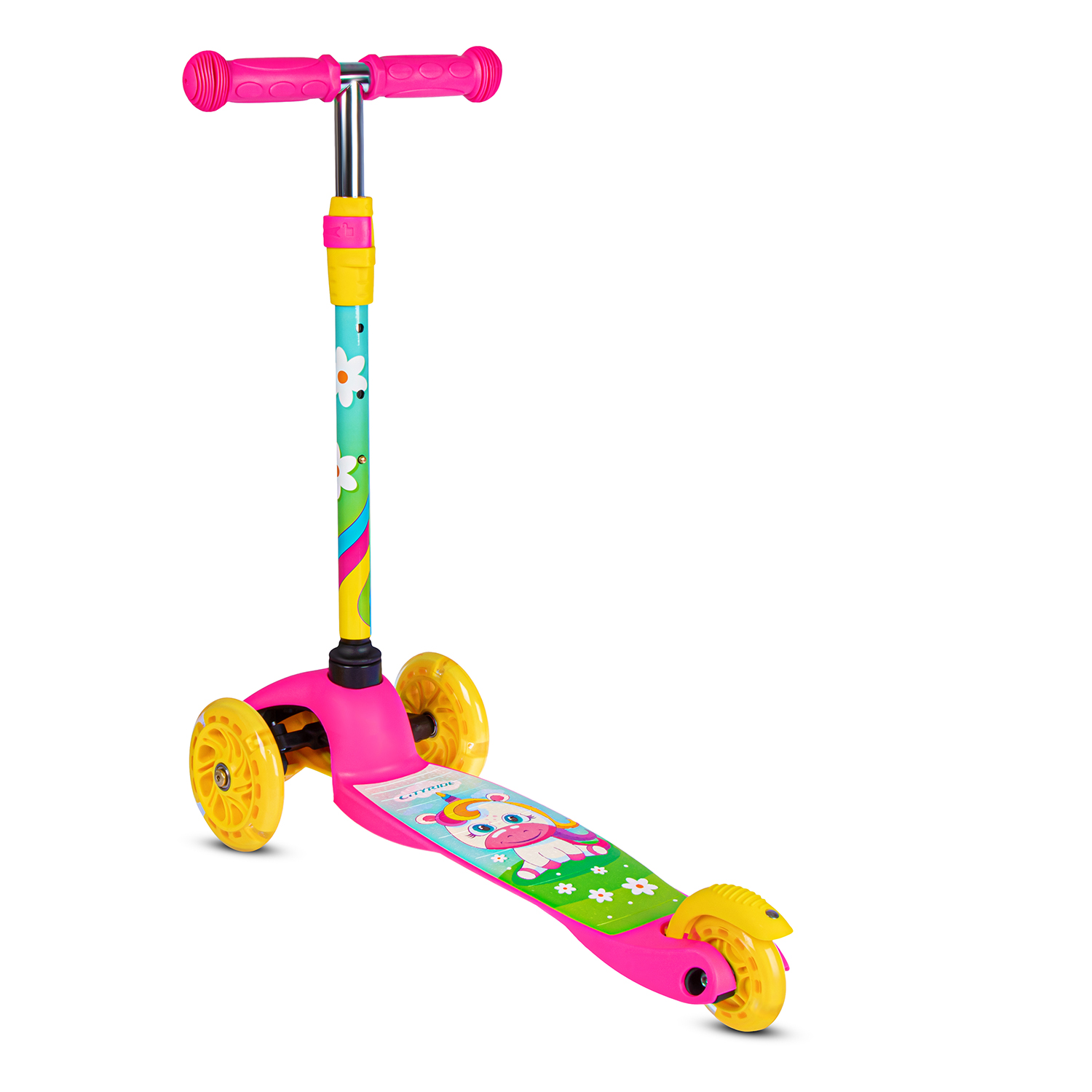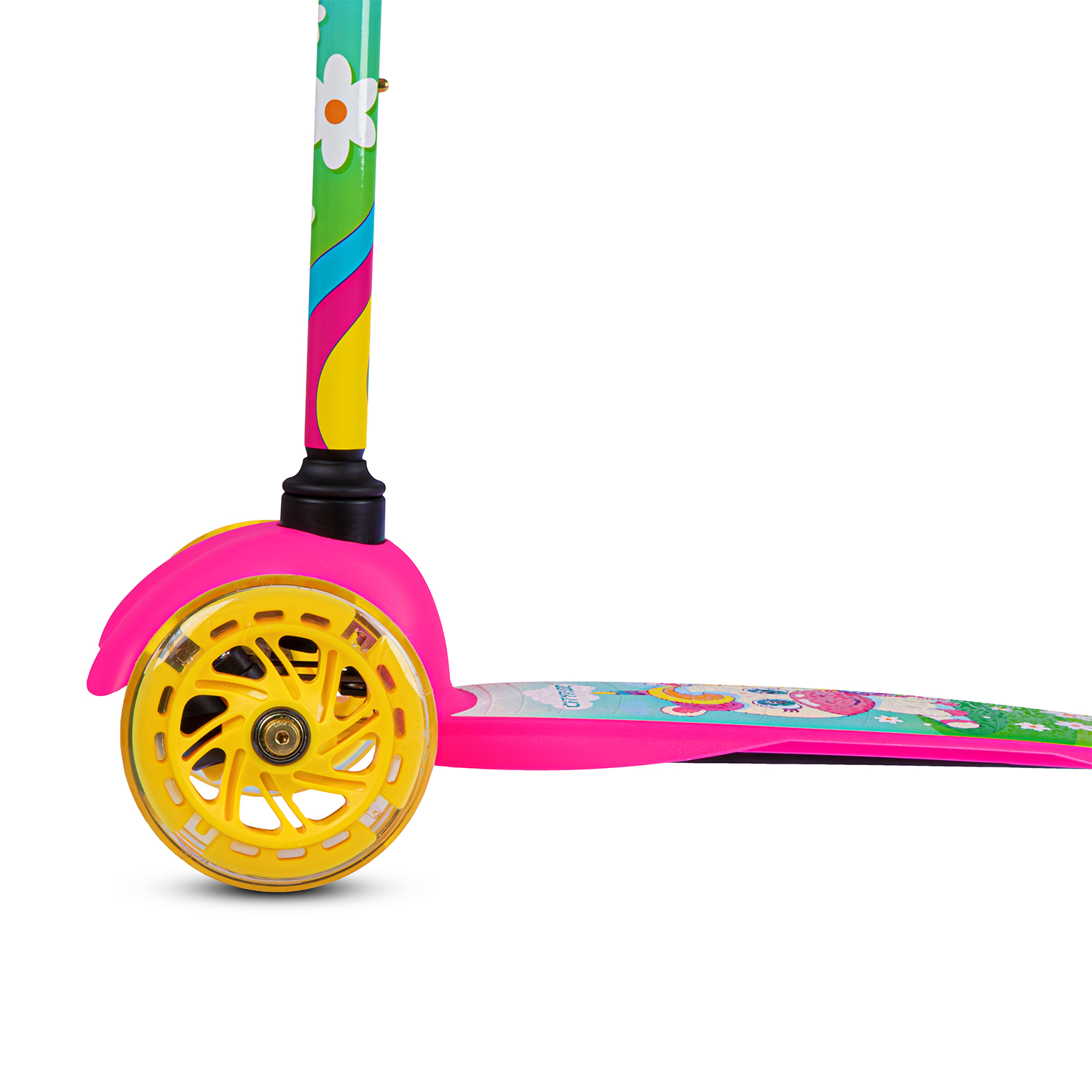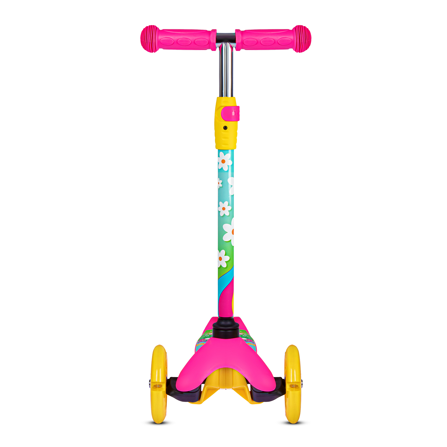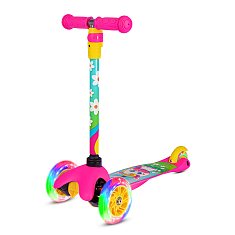 Детский трехколесный самокат – отличный самокат для веселых поездок • Материал основы: PP + нейлон • Красочный рисунок на платформе непременно понравится юному гонщику • Телескопический руль обеспечит идеальную настройку под рост ребенка • Резиновая рукоятка на руле имеет специальные ограничители, которые предотвратят соскальзывание рук и сделают поездку более безопасной • Рулевая стойка наклоняется в нужную сторону, что позволяет уверенно держаться в поворотах, сохраняя равновесие • Переднее колесо PU диаметром 120 мм и заднее колесо диаметром 76 мм придают самокату хорошую устойчивость • Колеса со светодиодами сделают катание более веселым и интересным • Надежный ножной тормоз позволит быстро остановить самокат перед препятствием • Подшипник ABEC-5 обеспечивает плавный ход и превосходную маневренность Размеры: 53 х 23 х 70 см Размеры основы: 51 х 11 см Максимальная нагрузка: 35 кг Возраст: от 3 лет