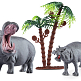 Набор животных состоит из 3 предметов: фигурки бегемота с детёнышем и пальма.