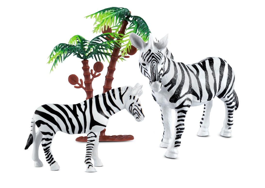 В набор входят: зебра 10 х 9,5 см, жеребёнок 8,5 х 6 см, пальма 9 х 10 см.