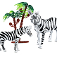 Набор животных состоит из 3 предметов: фигурки зебры с детёнышем и пальма.