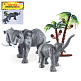 Набор животных состоит из 3 предметов: фигурки слона со слонёнком и пальма.