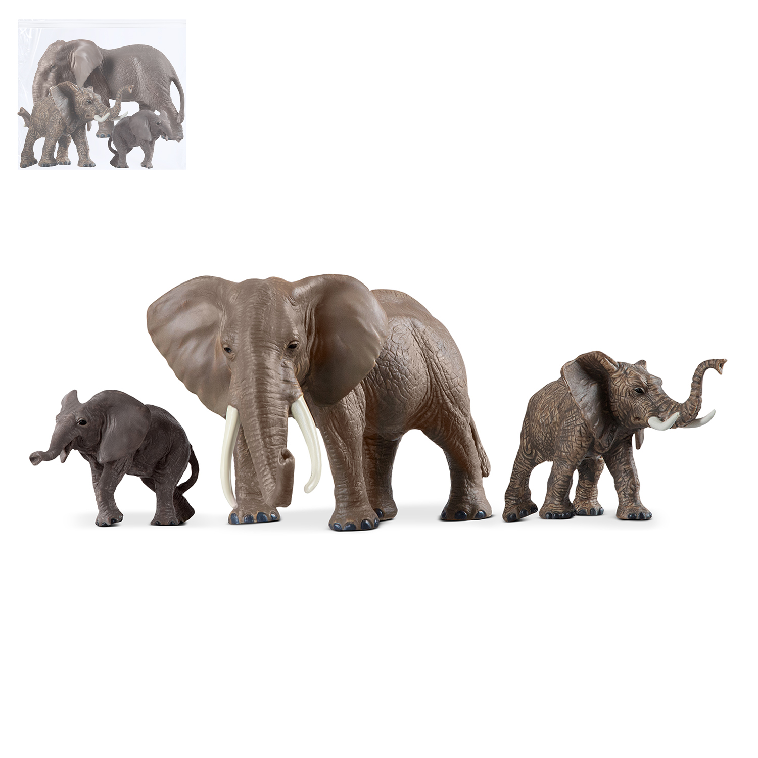 В набор "Животные Африки" входят: слон - ~ 16,5 см, слонята - ~ 9,5 - 13,5 см.
