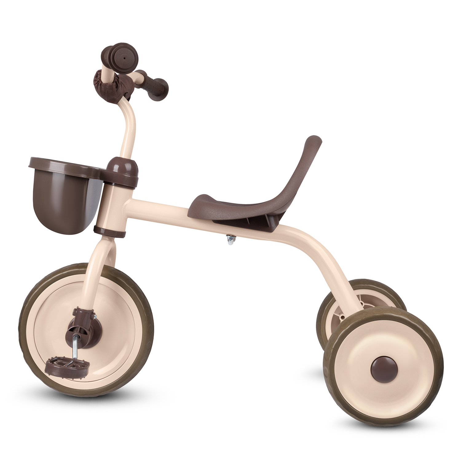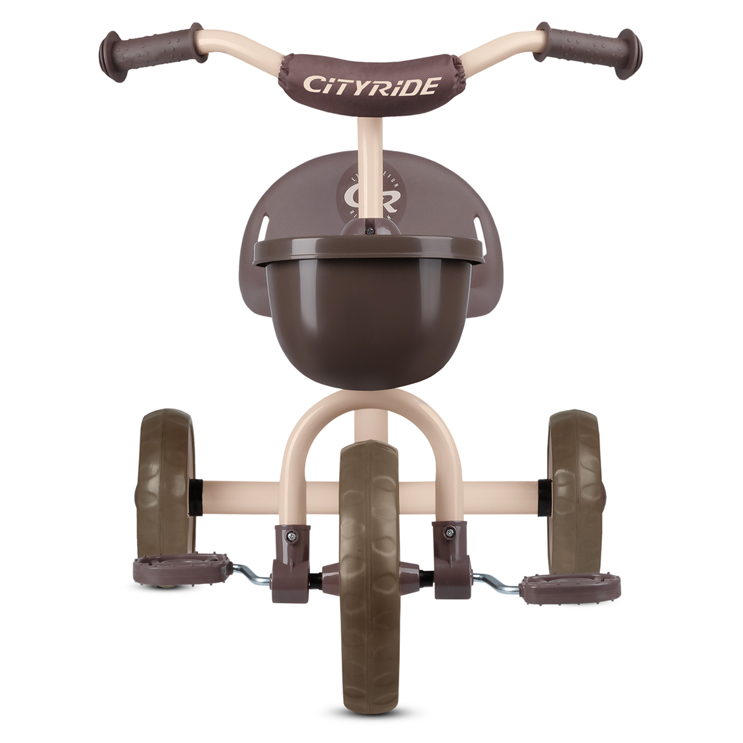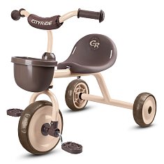 Детский трехколесный велосипед "CR" на пласт. колесах 8,5"/7 в/к.Корзинка спереди, мягкий бампер. Цвет: коричневый