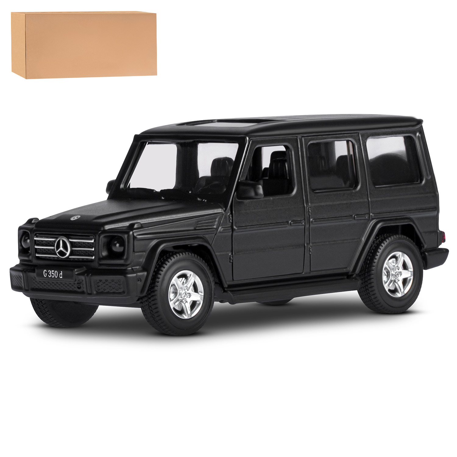 Металлическая лицензионная машинка Mercedes-Benz G350d - уменьшенная копия роскошного и легендарного гелендвагена в масштабе 1:42.