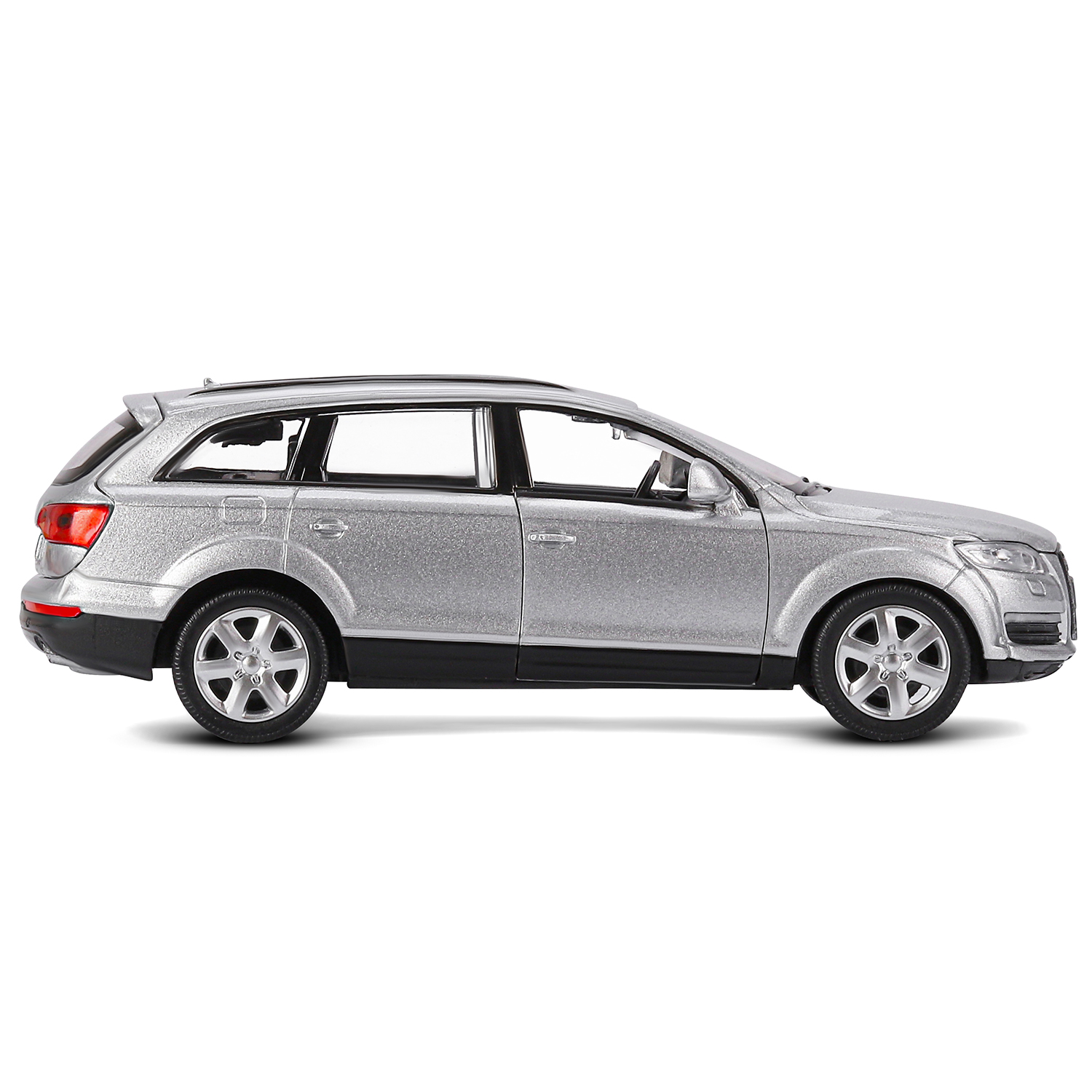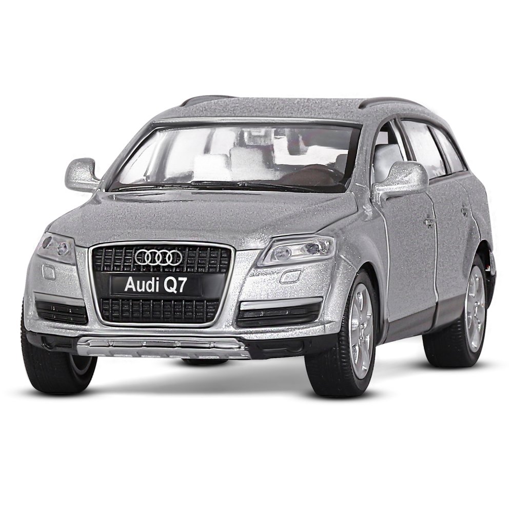 Металлическая лицензионная машинка Audi Q7 - уменьшенная копия известного внедорожника в масштабе 1:32. Модель машинки детально проработана и выполнена с легко узнаваемым дизайном как у оригинала, которую часто можно встретить на улицах города. У машинки открывается капот, багажник и передние двери. Если нажать на корпус или открыть двери, загорятся фары и включится звук мотора. Игрушка оснащена инерционным механизмом. Чтобы она поехала вперед, ее нужно немного откатить назад. С такой машинкой ребенок может устраивать гонки с друзьями. Игрушка развивает мелкую моторику, реакцию и координацию движения. Она надолго займет внимание ребенка или пополнит коллекцию любителя иномарок. Характеристики: Возраст: от 3-х лет Масштаб: 1:32 Материал корпуса: металл Цвет: серебряный Функции: инерционный механизм, открываются двери, капот и багажник, свет, звук Размер коробки: 18 х 13,5 х 9 см Размер машинки: 16 х 7 х 5,5 см