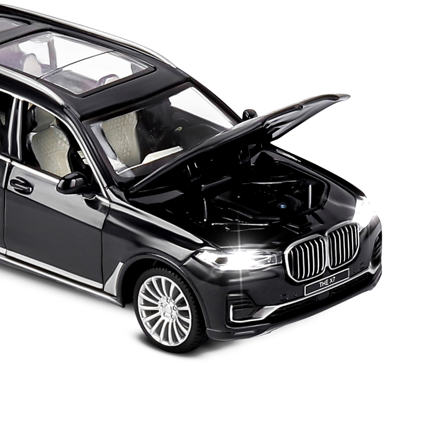 ТМ "Автопанорама" Машинка металлическая 1:32 BMW X7, черный, свет, звук, откр. четыре двери, капот и багажник, инерция, в/к 19*9*7 см
