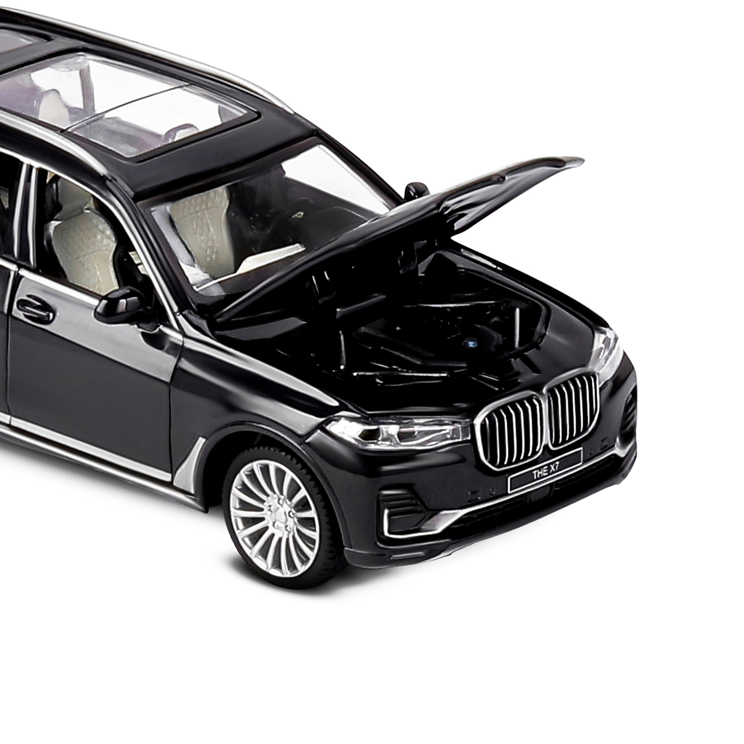 ТМ "Автопанорама" Машинка металлическая 1:32 BMW X7, черный, свет, звук, откр. четыре двери, капот и