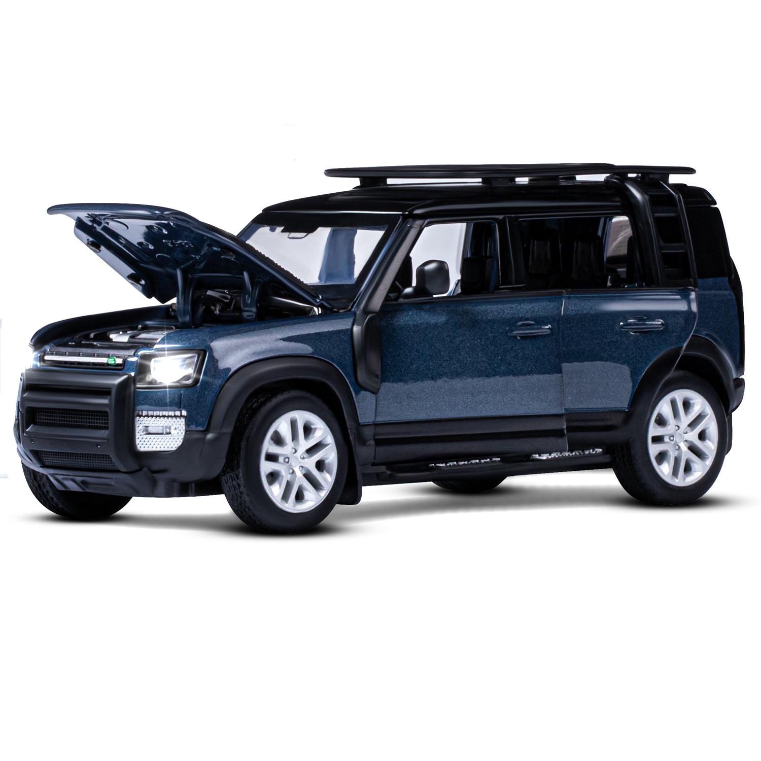 ТМ "Автопанорама" Машинка металлическая 1:32 Land Rover Defender 110, синий, откр.4 двери, капот, ба