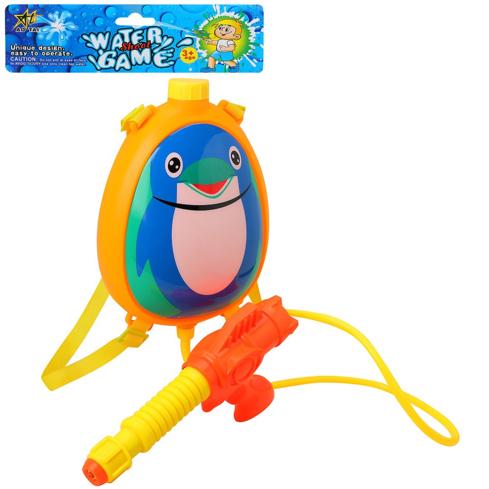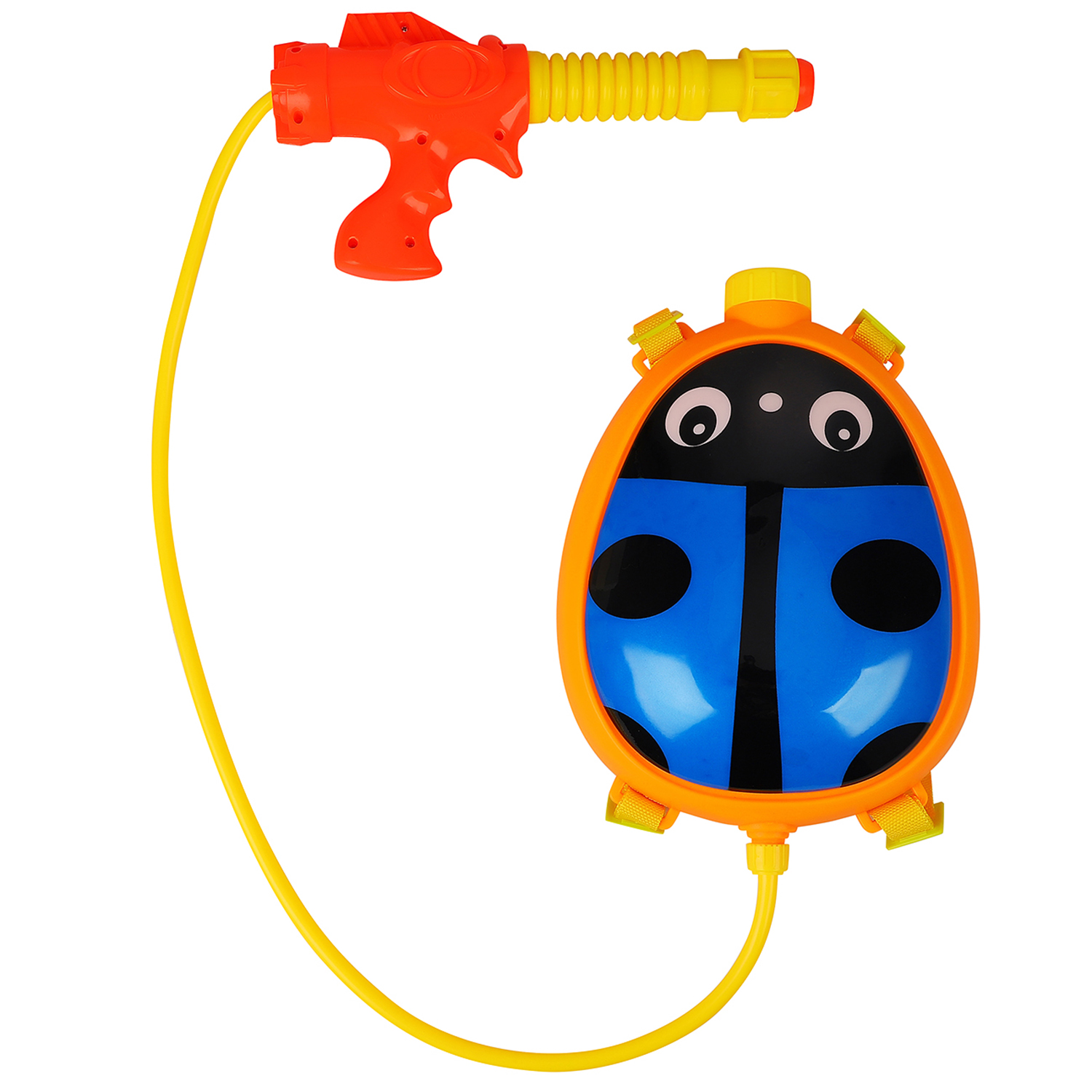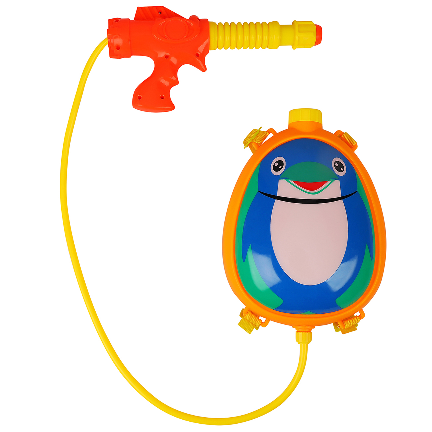 Вода заливается в специальное отверстие с удобной крышечкой, а подача осуществляется через шланг, который соединяет пистолет и яркий рюкзачок. Ранец, выполненный в сочных цветах, его легко и комфортно носить на спине, что позволяет ребенку свободно двигаться и наслаждаться игрой. Эргономичная рукоятка пистолета специально разработана для детской руки, обеспечивая удобство и легкость использования.