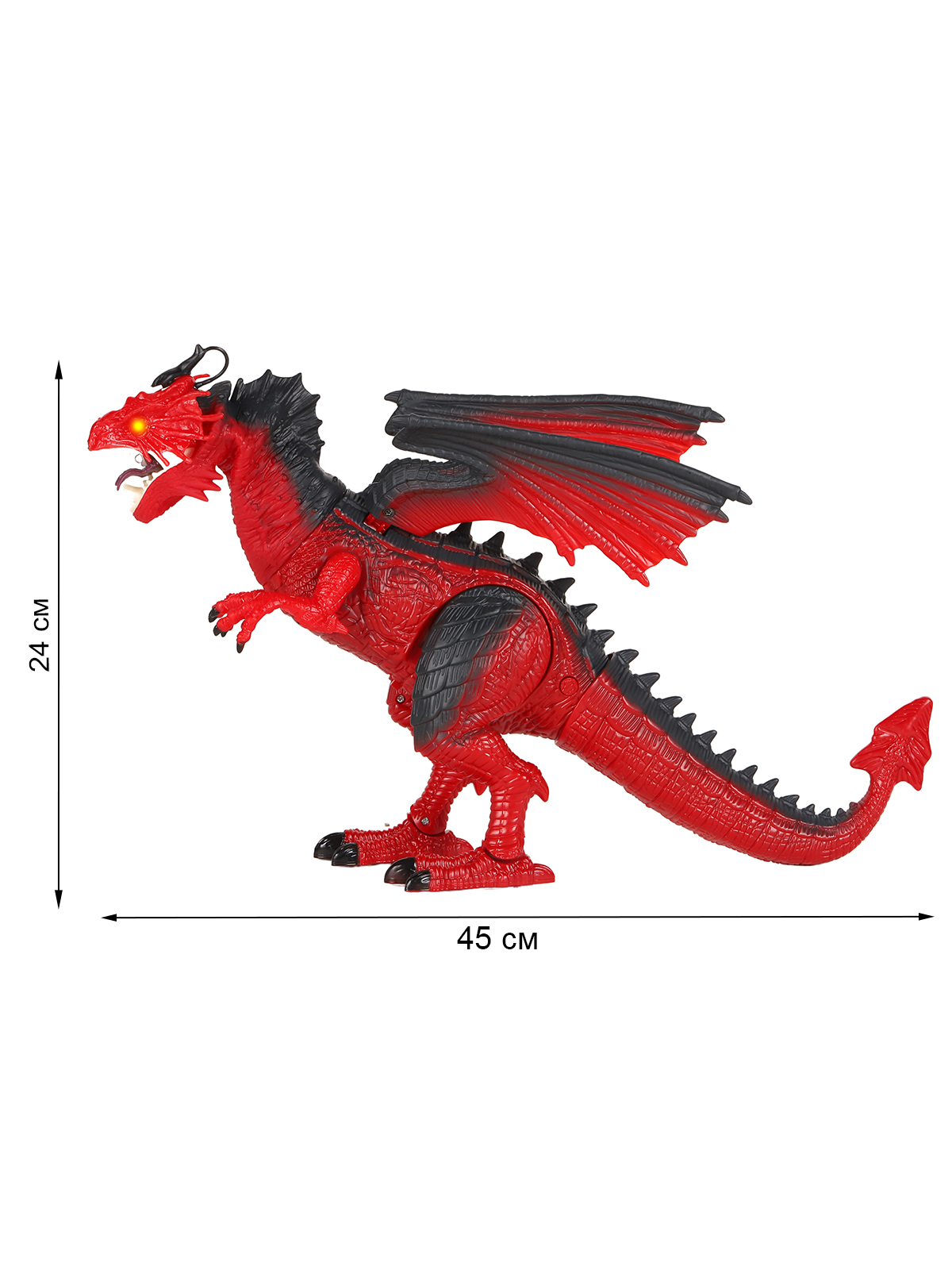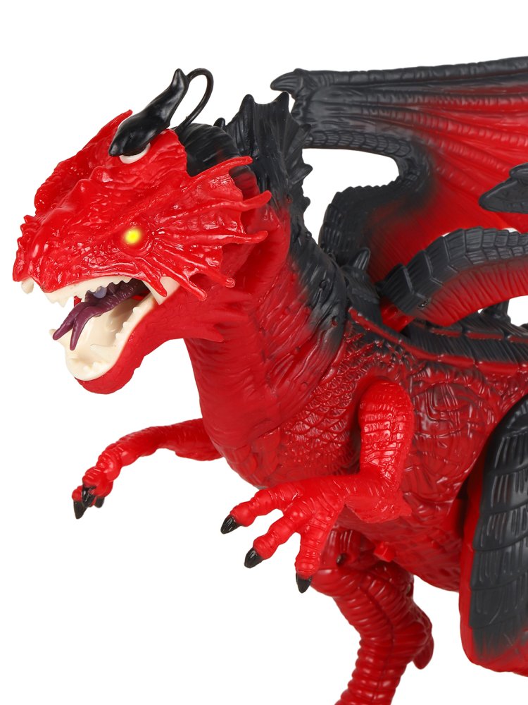 Дракон шагает, двигает крыльями и головой. Эластичный материал на шее делает движения очень реалистичными.