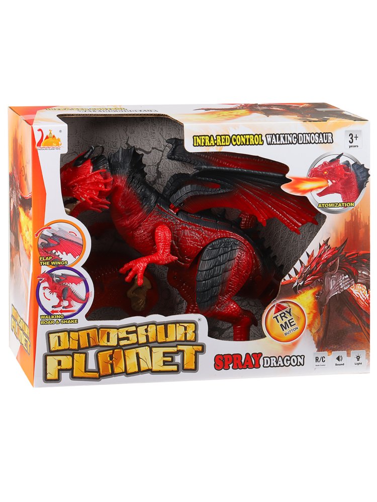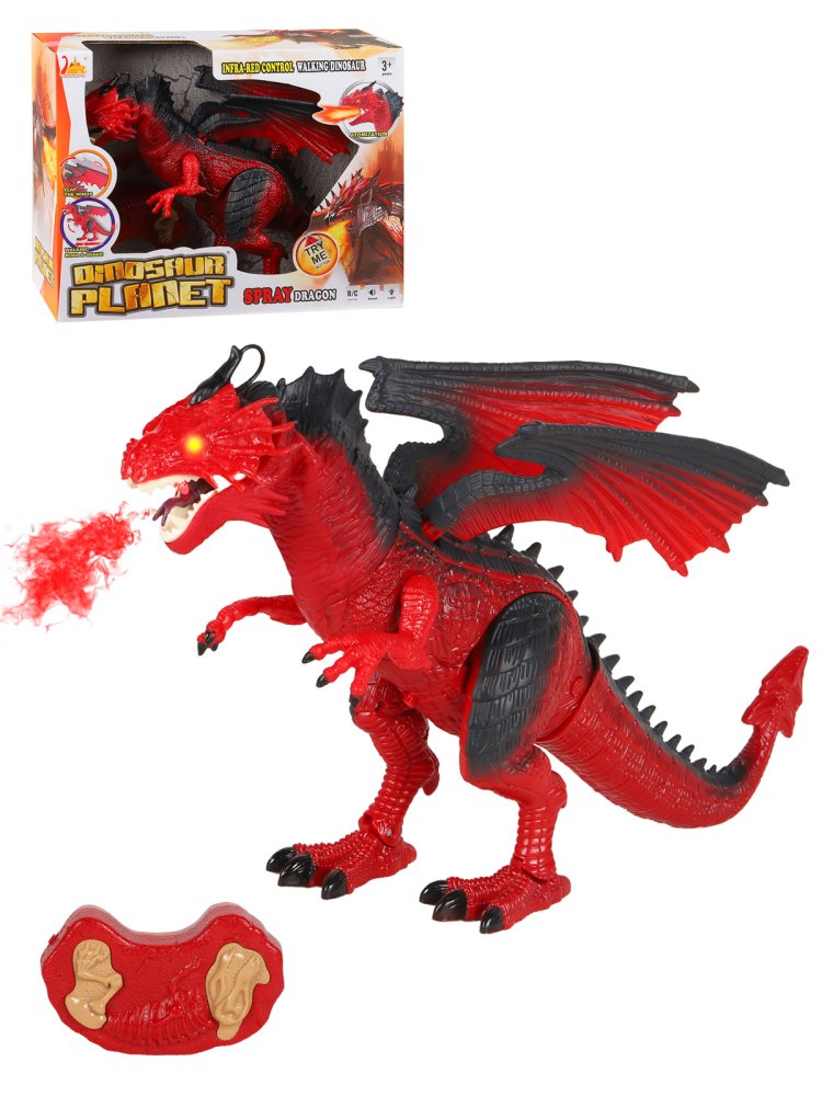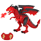 Р/У Дракон со светом, звуком и паром, шагает, трясет головой, эластичный материал на шее, цвет красный, в/к 40,5*13*30,5 см